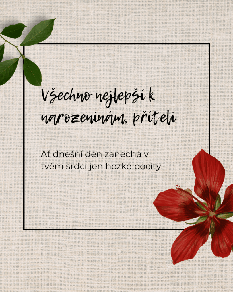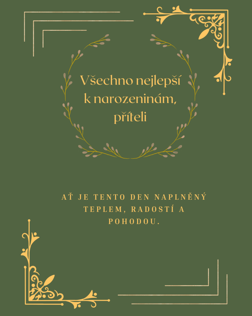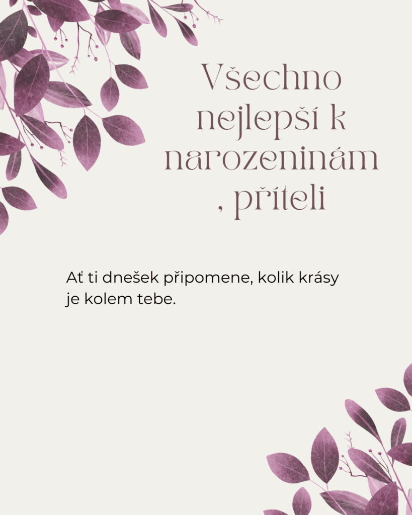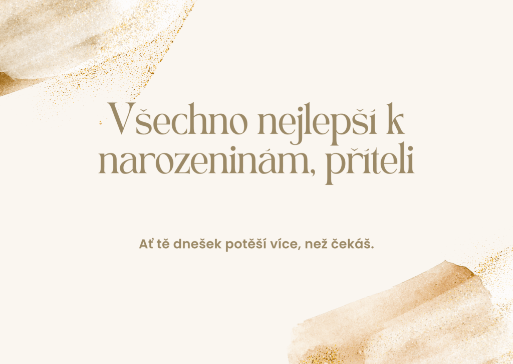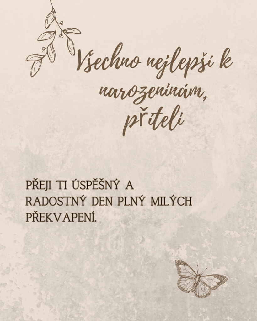 Drahý příteli, v den Tvých narozenin Ti přeji, aby ses cítil milovaný, obdivovaný a opravdu šťastný. Ať je dnešek plný krásných slov, příjemných překvapení a chvílí, které budou patřit jen Tobě. Vedle Tebe cítím klid, důvěru i radost, kterou jsem dřív ani neuměla pojmenovat. Jsi pro mě člověk, se kterým má láska skutečný význam.