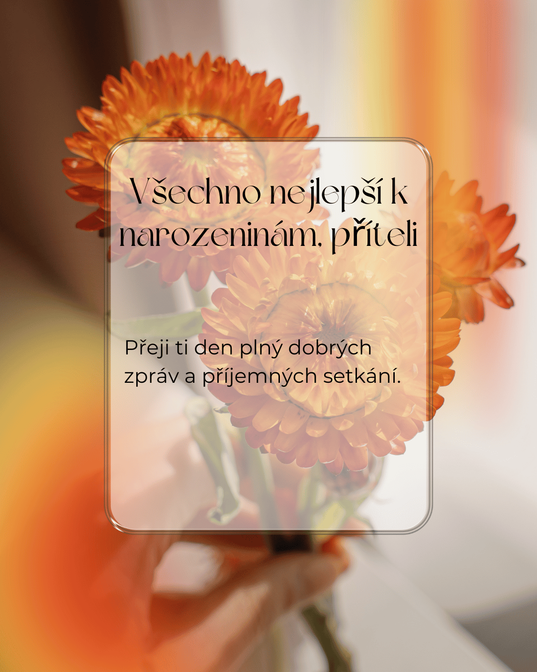 Někdy je těžké najít správná slova pro člověka, který znamená tolik. Dnes Ti ale chci popřát, aby ses každý den probouzela s úsměvem, aby Tě potkávaly dobré zprávy a aby ses i v těch nejobyčejnějších chvílích cítila šťastná. Ať máš sílu překonat vše těžké a radost si užívat vše krásné.