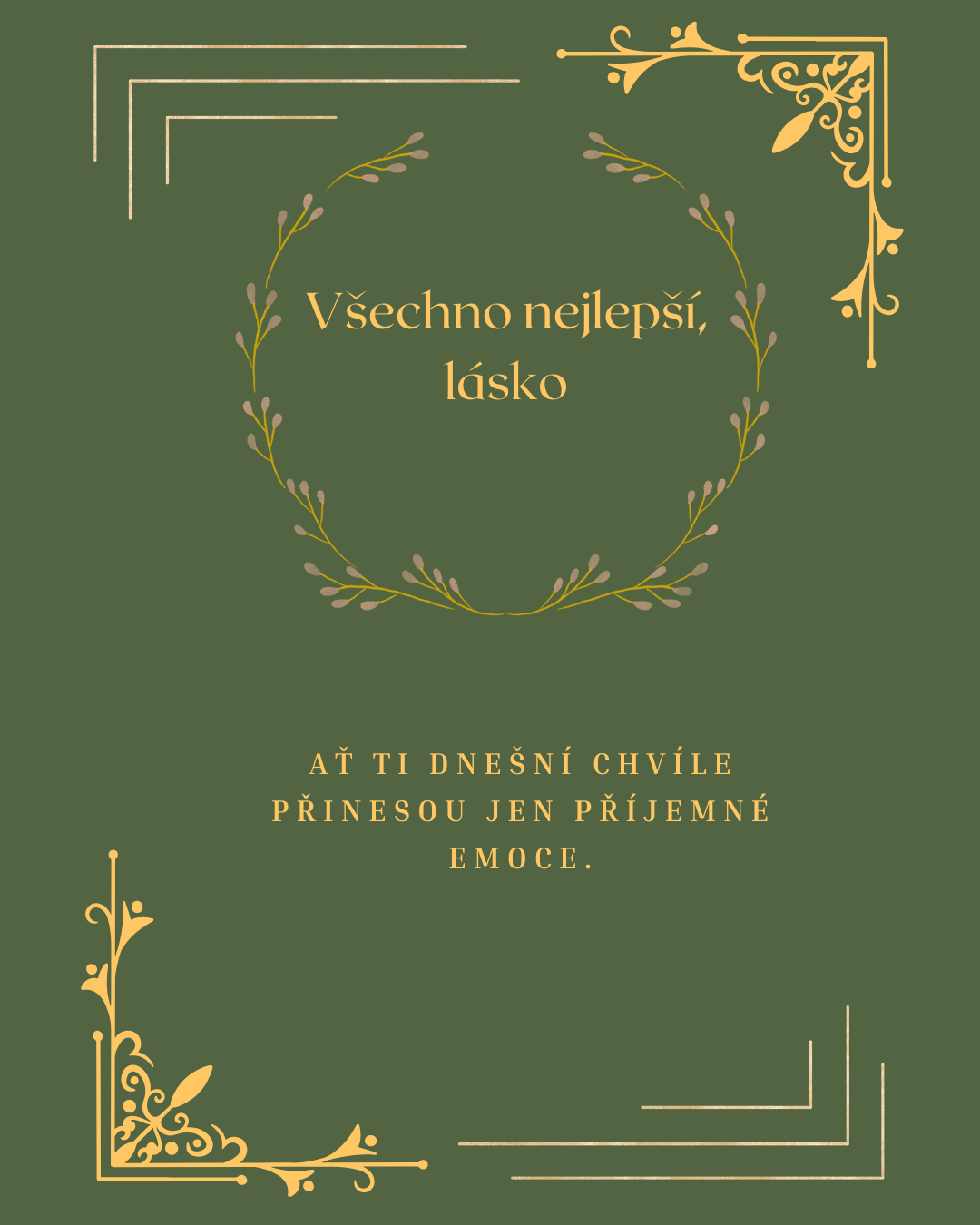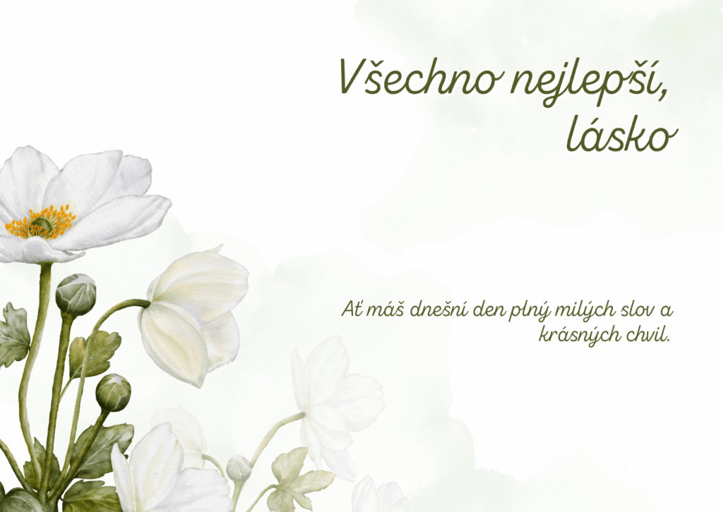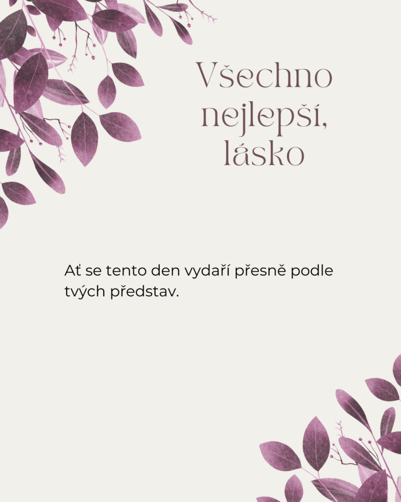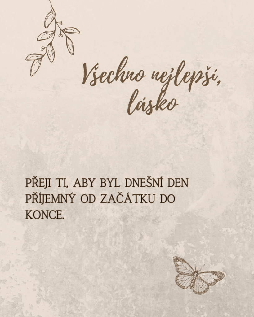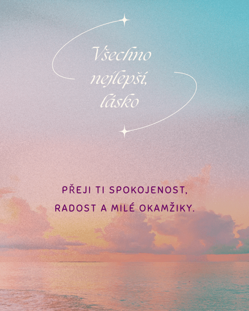 Na Tvůj narozeninový den Ti přeji všechno, co dělá život opravdu krásným. Hodně lásky, pevné zdraví, vnitřní klid a sílu jít za tím, co si přeješ. Ať se Ti daří v práci, ve snech i ve všem, co Ti dává smysl. Jsi člověk, se kterým chci sdílet radosti i starosti, a právě proto Ti dnes přeji jen to nejkrásnější, co může člověk od života dostat.