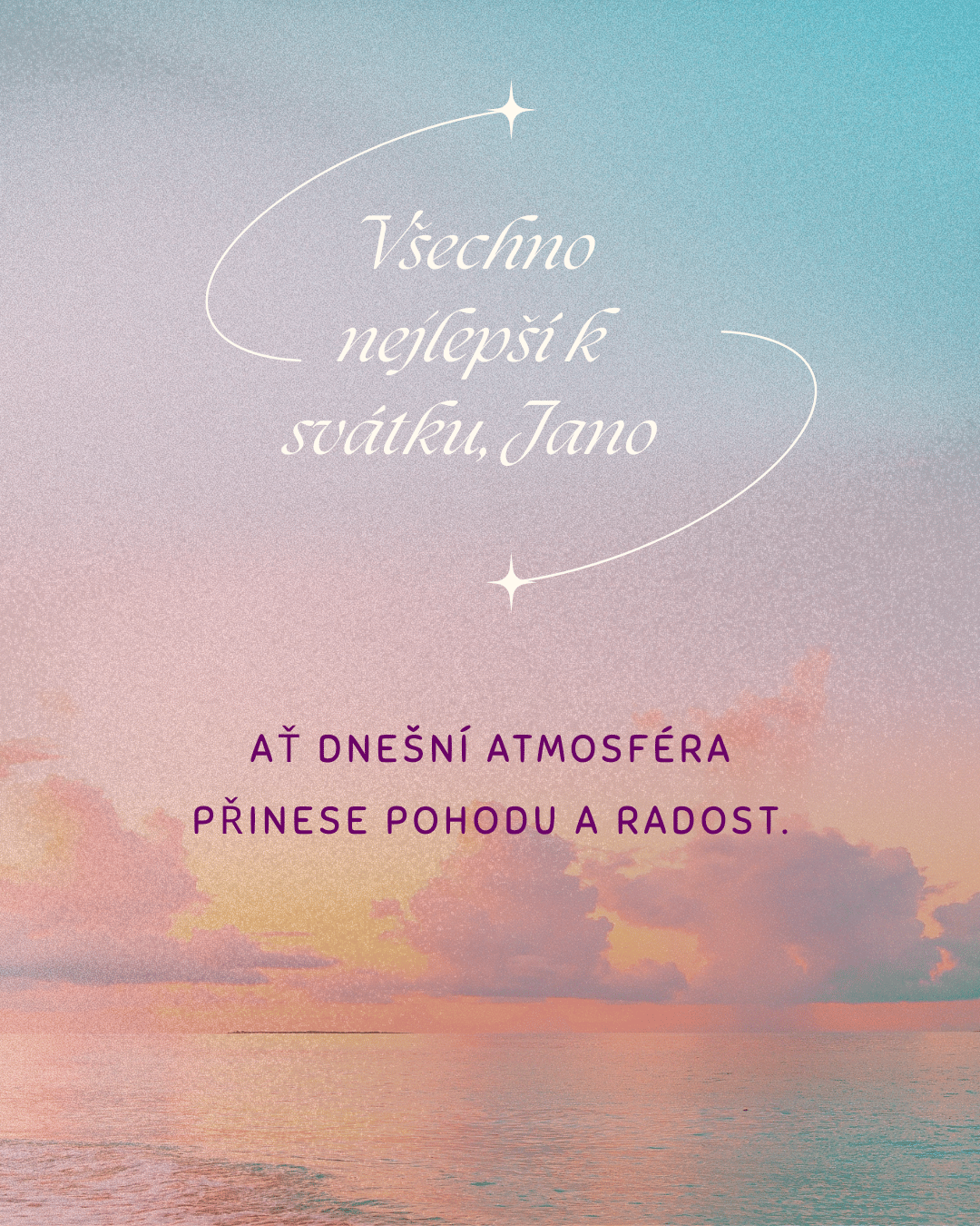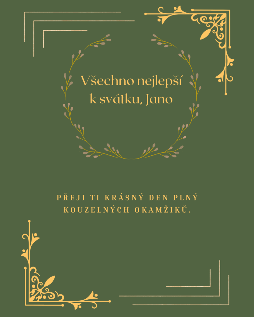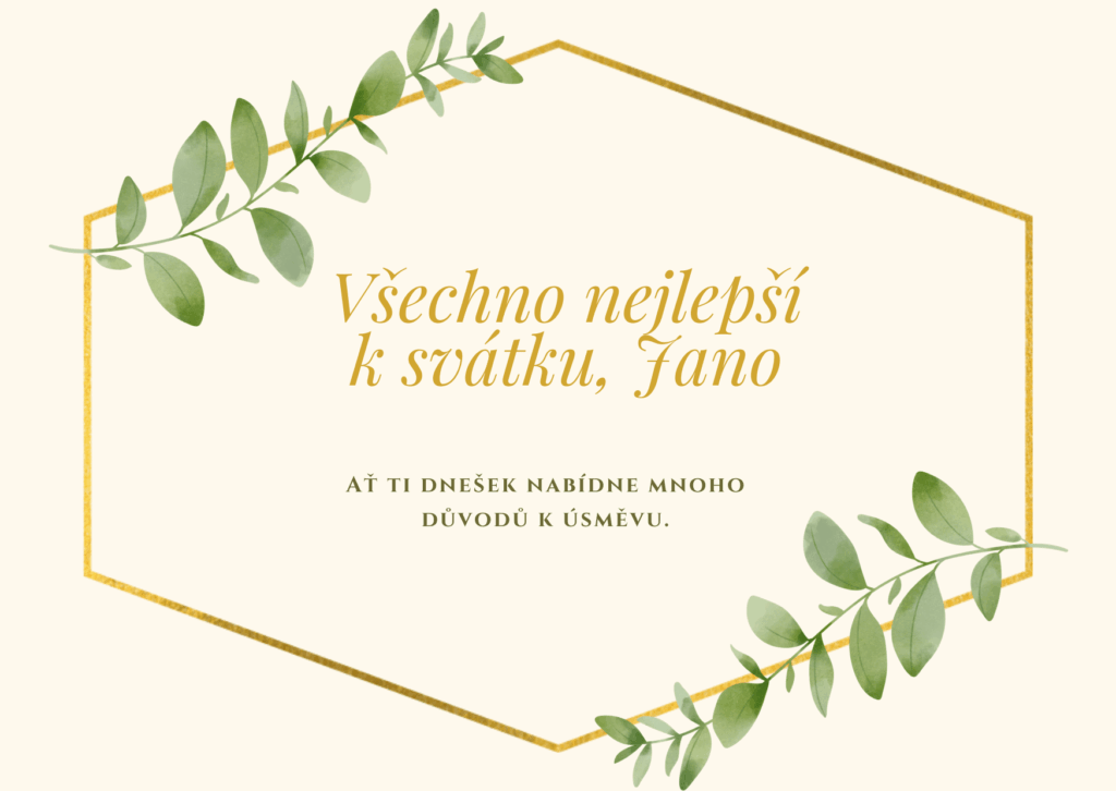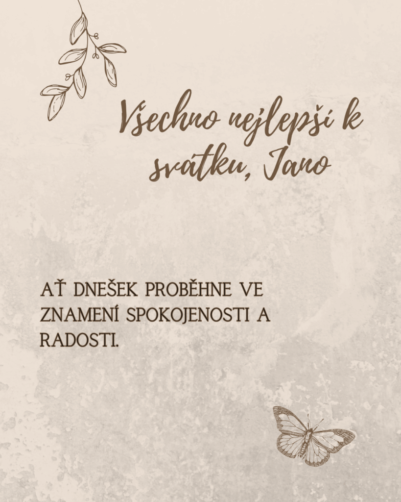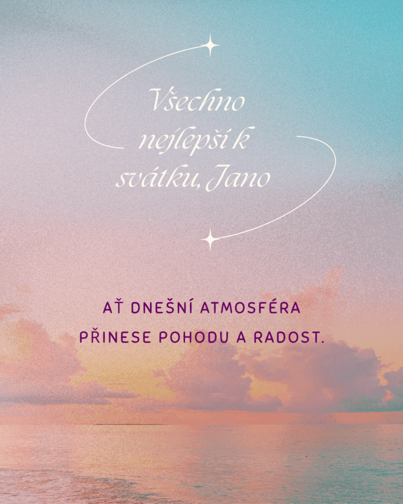 K tvému svátku, Jano, ti přeji hlavně pohodu, zdraví a spoustu krásných okamžiků, které ti připomenou, jak důležité je umět se zastavit a užít si hezký den. Ať se na tebe dnes usmívá štěstí a ať vše probíhá přesně tak, jak si přeješ.