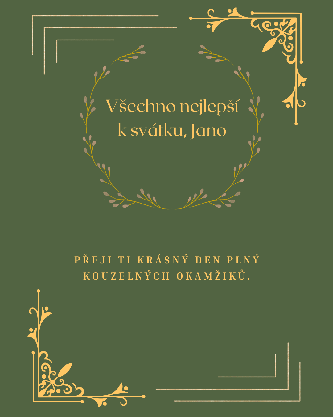 Krásný svátek, Jano. Přeji ti, aby byl dnešní den výjimečný, příjemný a naplněný krásnými slovy, která ti udělají radost. Ať se kolem tebe drží pohoda, srdečnost a lidé, vedle kterých je život jednodušší a veselejší.