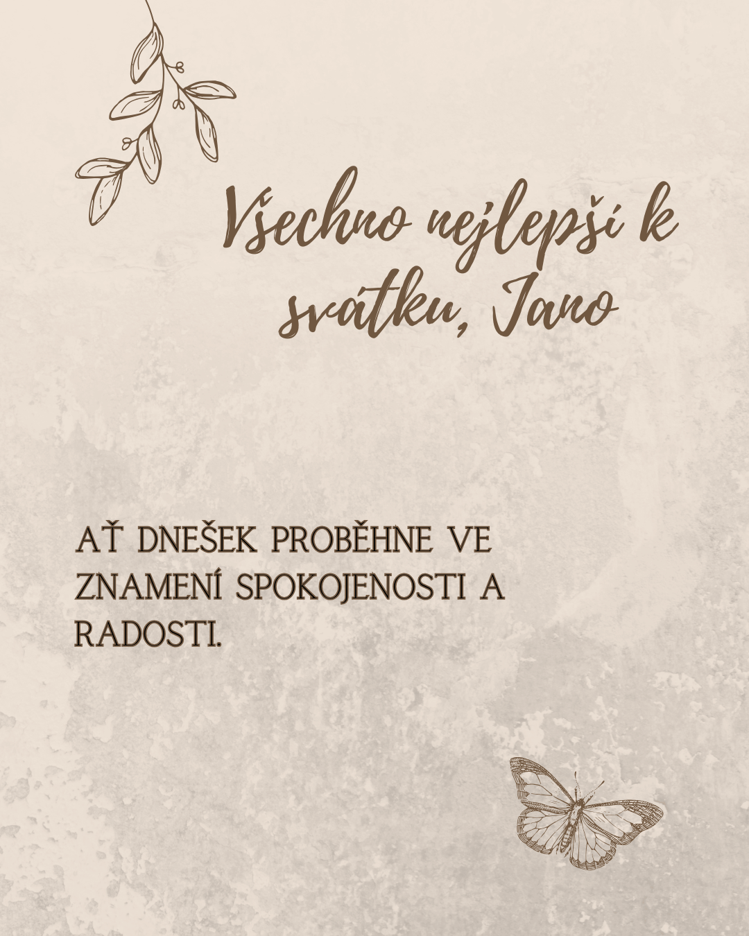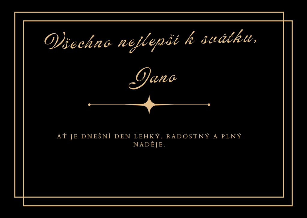 Milá Jano, ke svátku ti nepřeji jen obyčejné blahopřání, ale hlavně chvíle, které ti vykouzlí úsměv na tváři, klid v duši a radost v srdci. Ať je dnešek naplněný pohodou, láskou a malými překvapeními, která zpříjemní celý den.