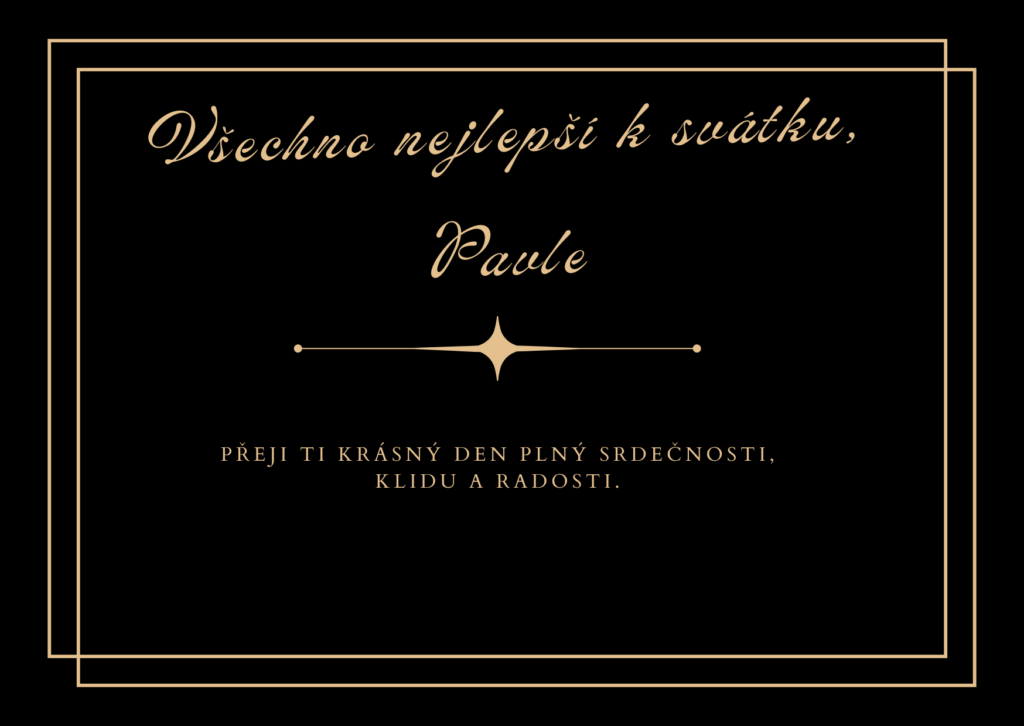 Milý Pavle, k tvému svátku ti přeji den plný radosti, pohody a krásných okamžiků, které ti vykouzlí úsměv na tváři. Ať se na tebe dnes usmívá štěstí, ať tě obklopují lidé, kteří tě mají rádi, a ať je celý den naplněný klidem, dobrou náladou a příjemnou atmosférou. Svátek je krásnou příležitostí připomenout ti, jak moc ti přeji všechno dobré a jak důležité je umět si užít i ty nejhezčí maličkosti.