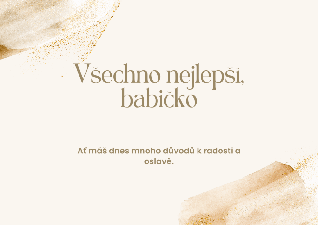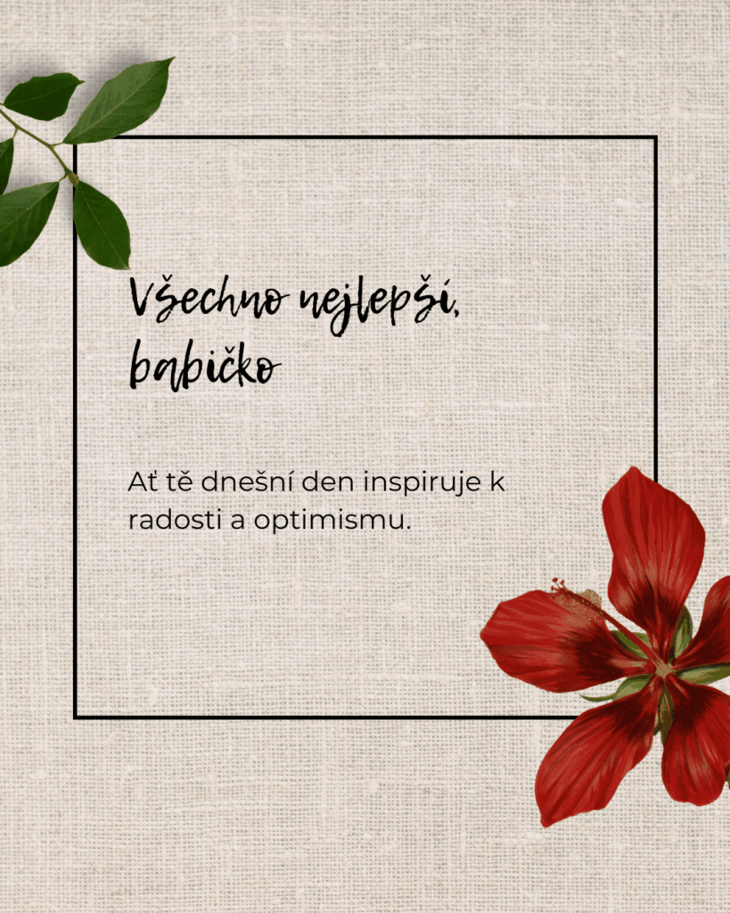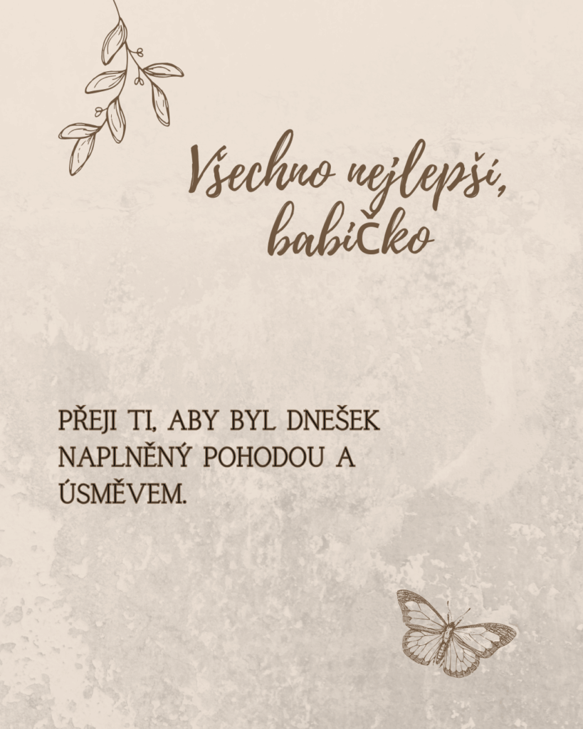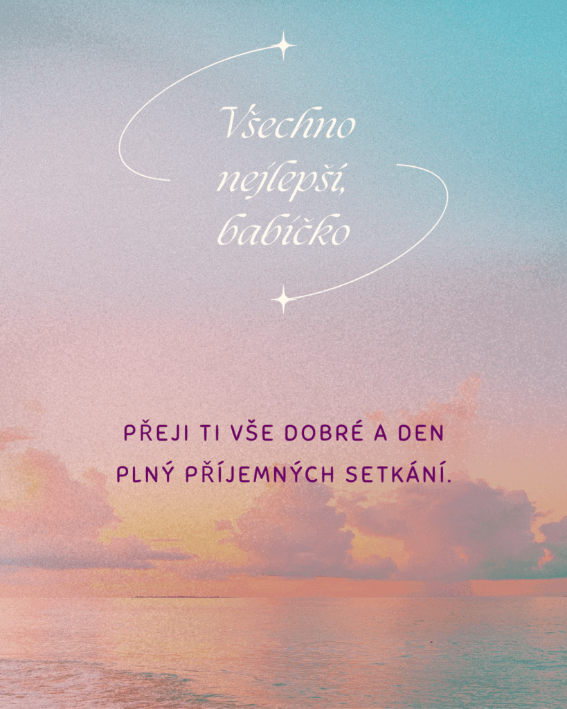 Milá babičko, někdy je těžké najít ta správná slova pro člověka, který pro nás znamená tolik. K Tvým narozeninám Ti proto přeji hlavně zdraví, radost, vnitřní klid a dny naplněné láskou. Ať se Ti splní i ta nejtajnější přání a ať máš stále důvod usmívat se, těšit se z maličkostí a užívat si každý krásný okamžik.