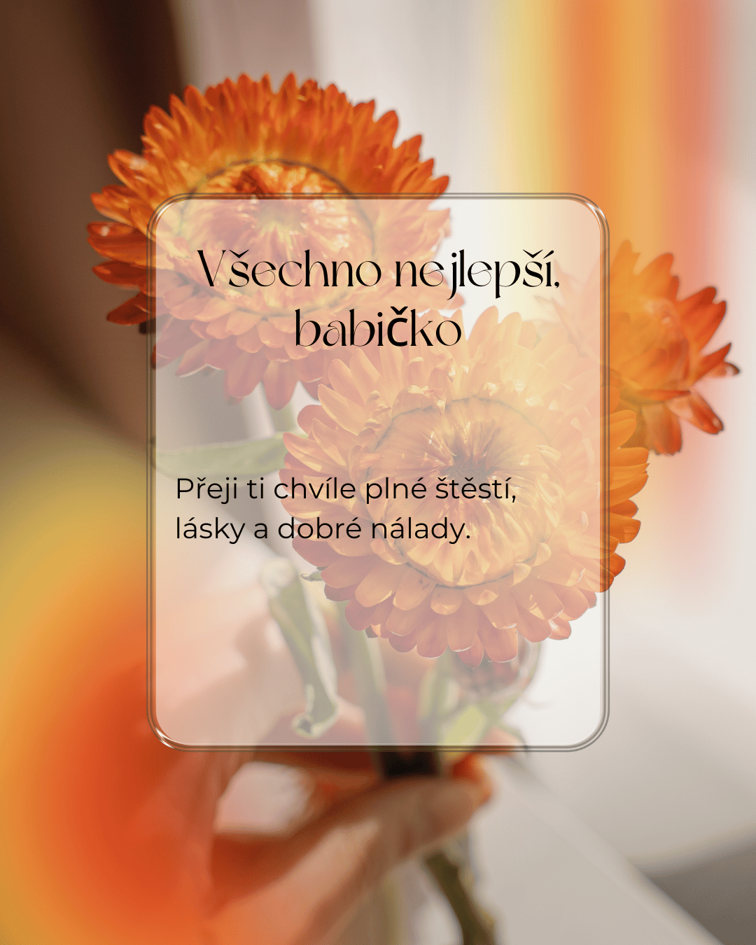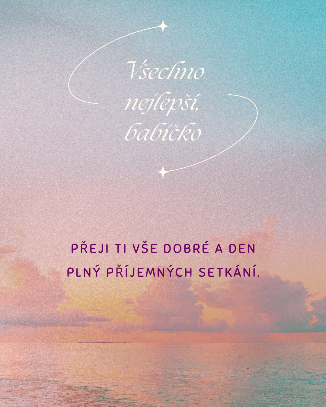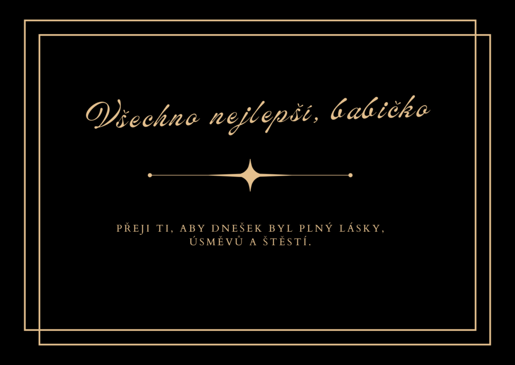 Milá babičko, někdy je těžké najít ta správná slova pro člověka, který pro nás znamená tolik. K Tvým narozeninám Ti proto přeji hlavně zdraví, radost, vnitřní klid a dny naplněné láskou. Ať se Ti splní i ta nejtajnější přání a ať máš stále důvod usmívat se, těšit se z maličkostí a užívat si každý krásný okamžik.