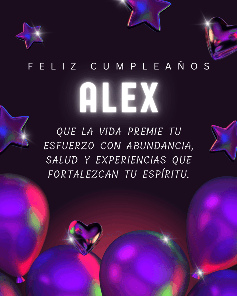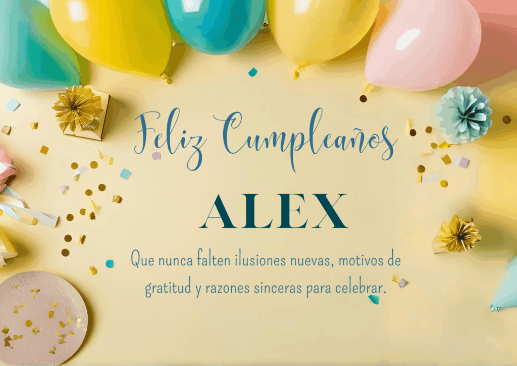 Si quieres dedicarle un feliz cumpleaños Alex con palabras sinceras, alegres y diferentes, aquí encontrarás una selección de frases pensadas para emocionar y sacar sonrisas. Cada una tiene un estilo único, ideal para acompañar imágenes descargables o compartir directamente por redes sociales. Expresa tu cariño con mensajes que reflejen amistad, admiración y buenos deseos. ¡Haz que Alex tenga un cumpleaños inolvidable con palabras llenas de energía positiva y alegría!