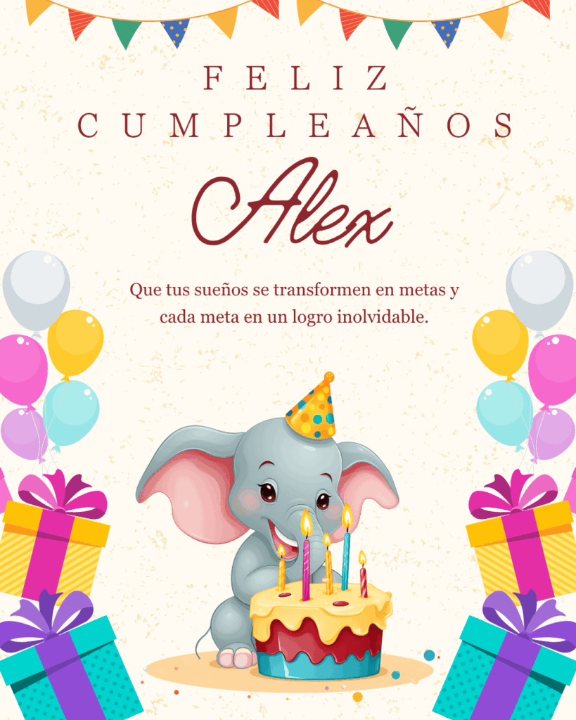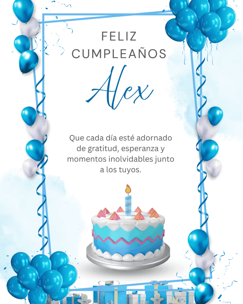 Esperamos que estas frases de feliz cumpleaños Alex te inspiren para dedicarle un mensaje lleno de cariño, humor o emoción. Puedes acompañarlas con imágenes descargables o compartirlas directamente por redes sociales. Cada frase está creada para transmitir energía positiva y buenos deseos. ¡Haz que Alex tenga un cumpleaños especial, lleno de sonrisas y palabras que le recuerden cuánto lo aprecian sus seres queridos!