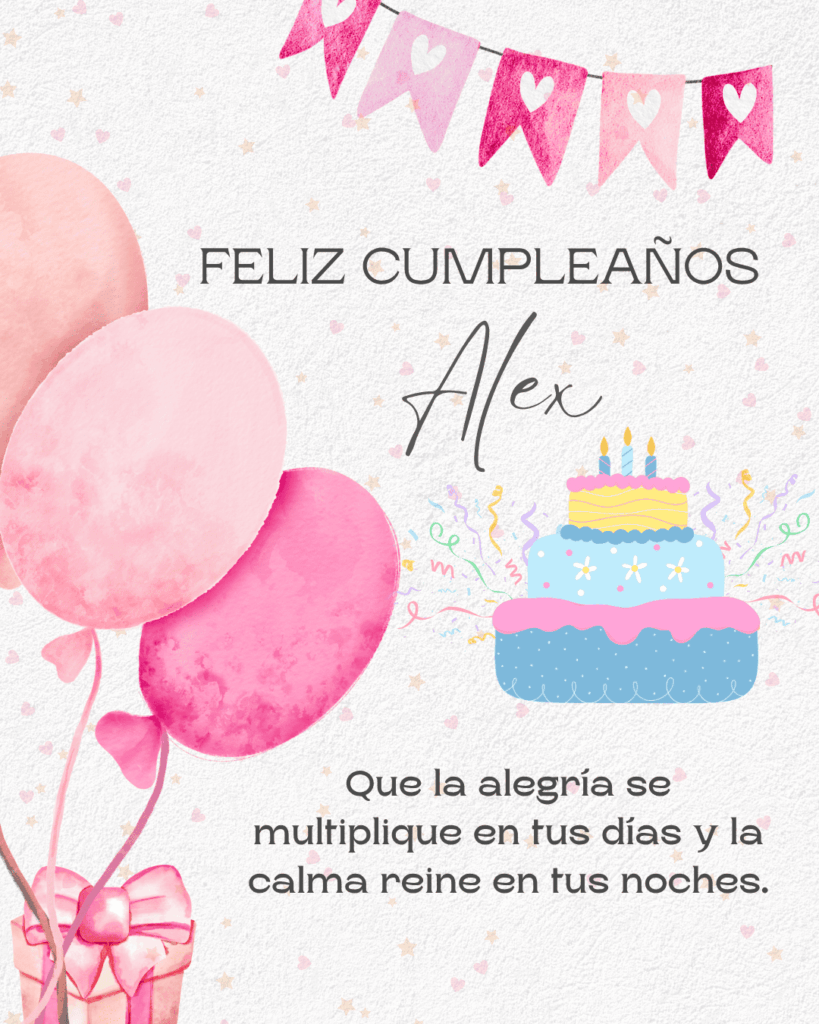 Feliz cumpleaños Alex. Hoy celebramos tu vida, tus logros y esa energía increíble que te caracteriza. Que este nuevo año venga cargado de alegría, amor y momentos que valgan la pena.