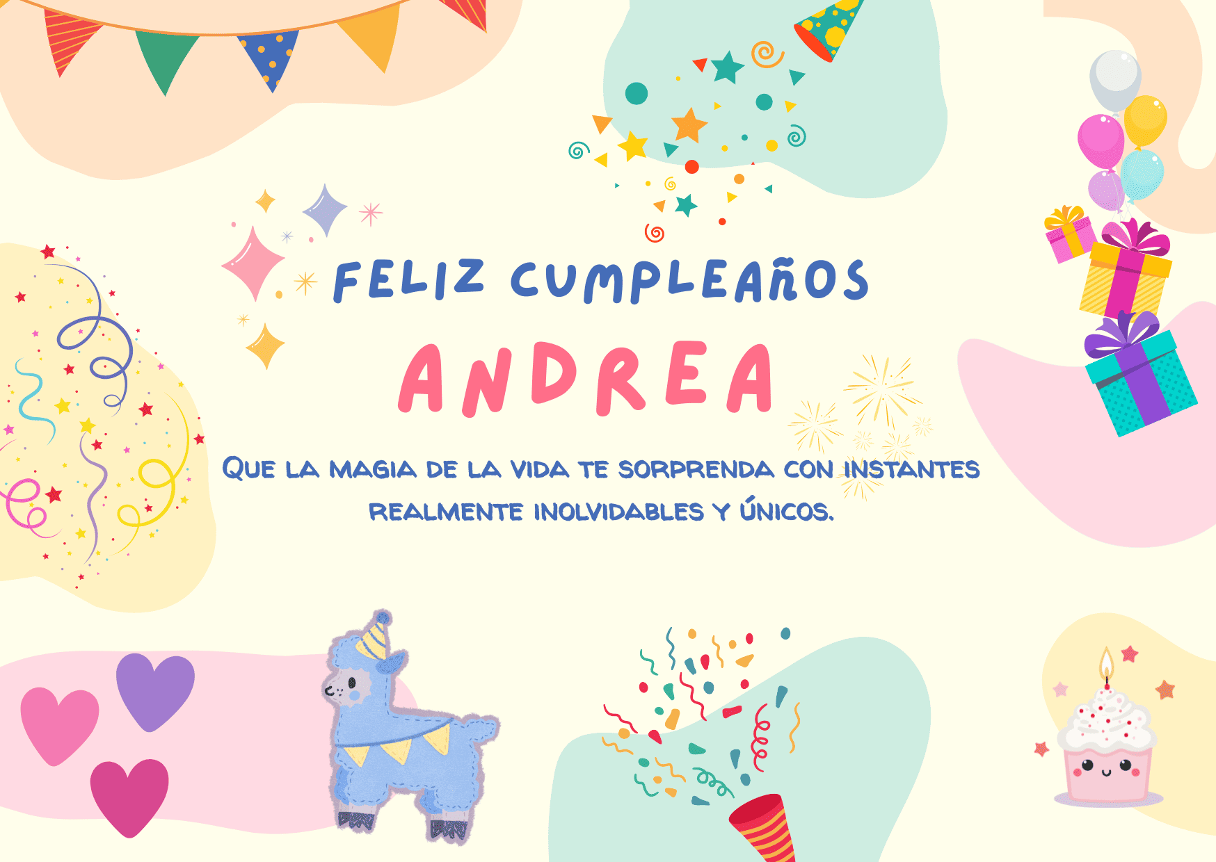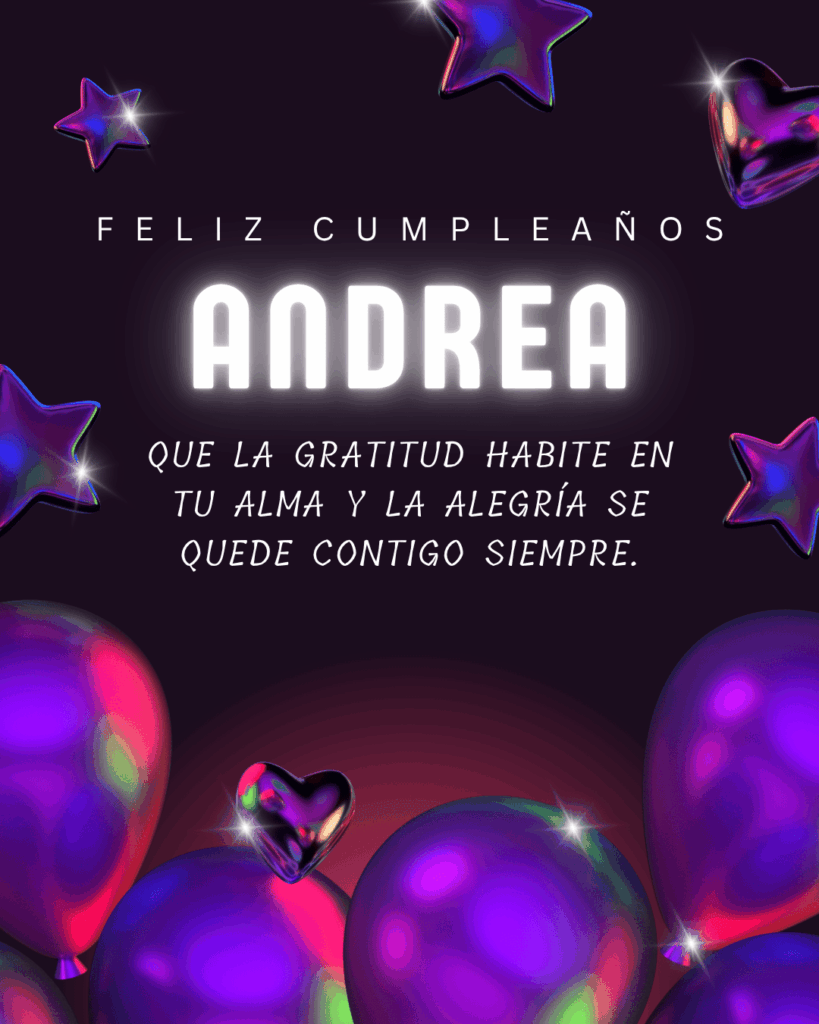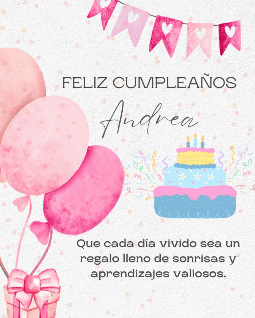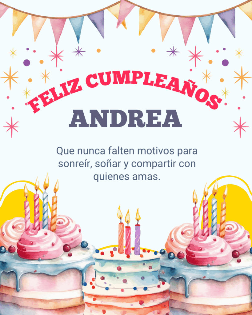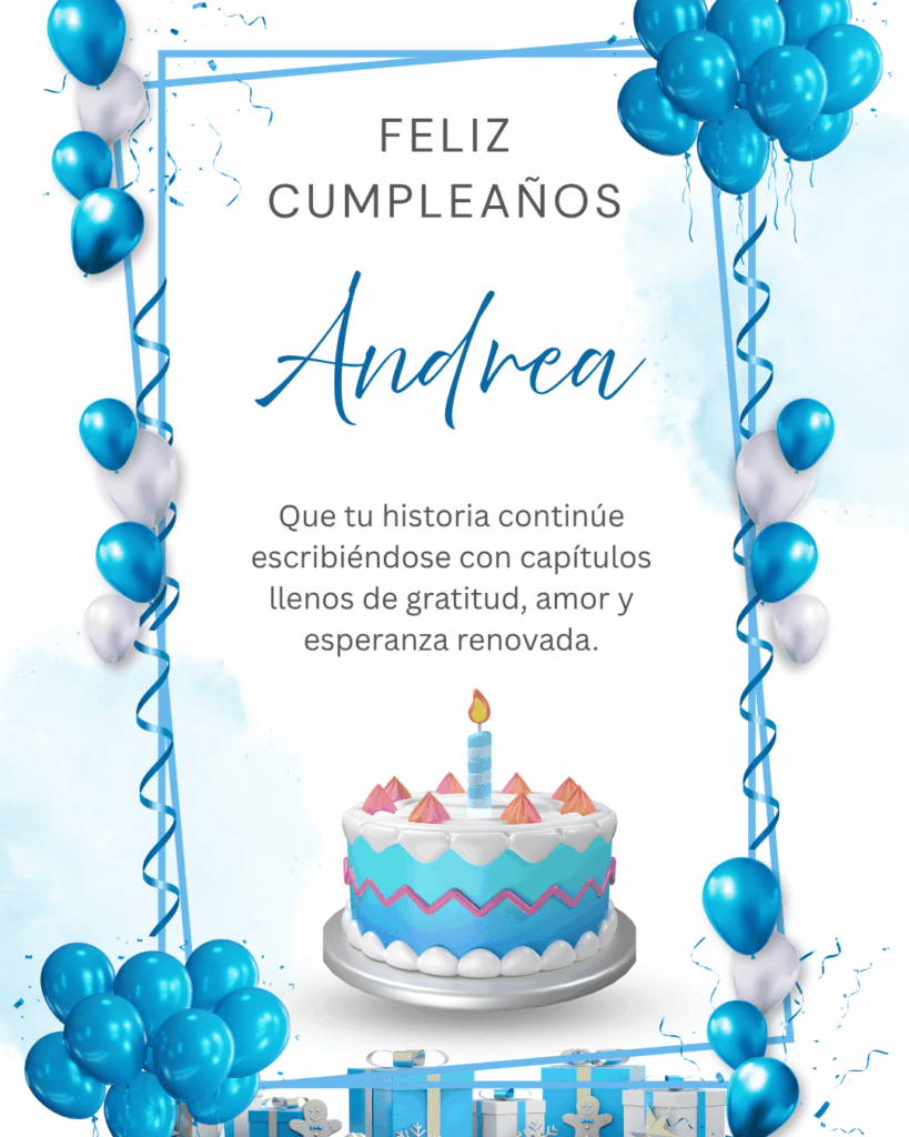 Esperamos que estas frases de feliz cumpleaños Andrea te ayuden a encontrar el mensaje perfecto para acompañar las imágenes disponibles para descargar. Cada texto ha sido creado para transmitir cercanía, emoción y buenos deseos de forma natural y sincera. Elige la frase que más conecte contigo, compártela y convierte este cumpleaños en un momento especial, lleno de palabras bonitas y recuerdos que permanezcan en el tiempo.