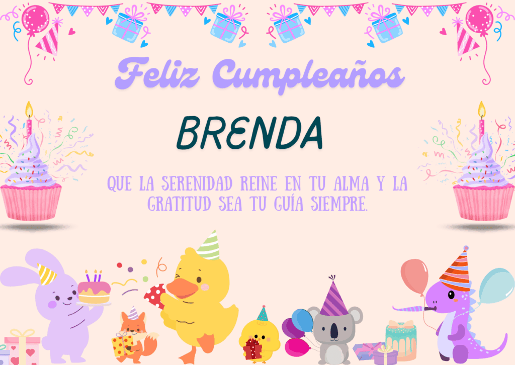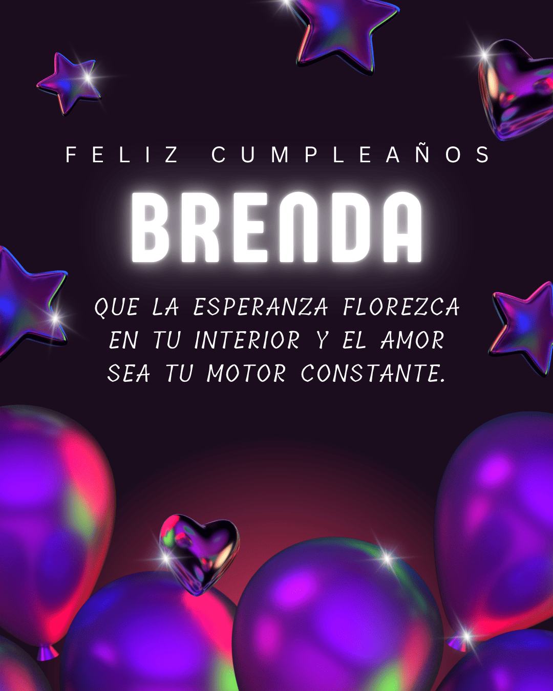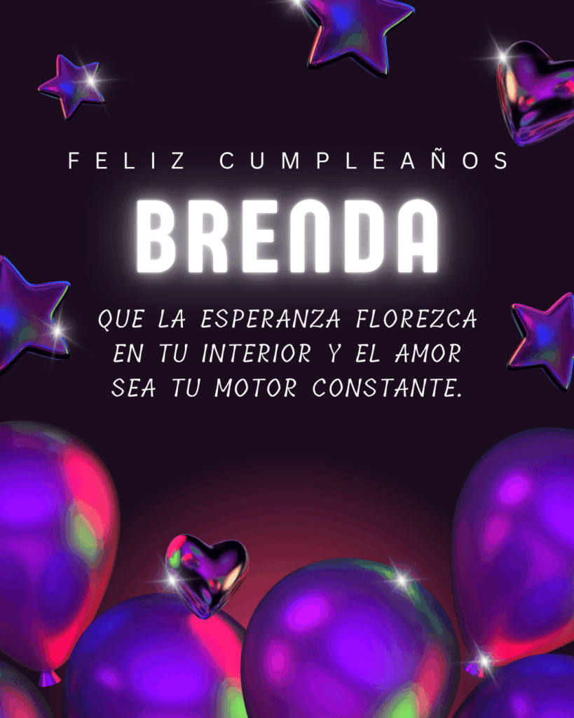 Feliz cumpleaños Brenda. Hoy celebramos tu vida, tu alegría y todo lo que te hace una persona única. Que este nuevo año te regale momentos llenos de amor, sonrisas sinceras y sueños cumplidos.
