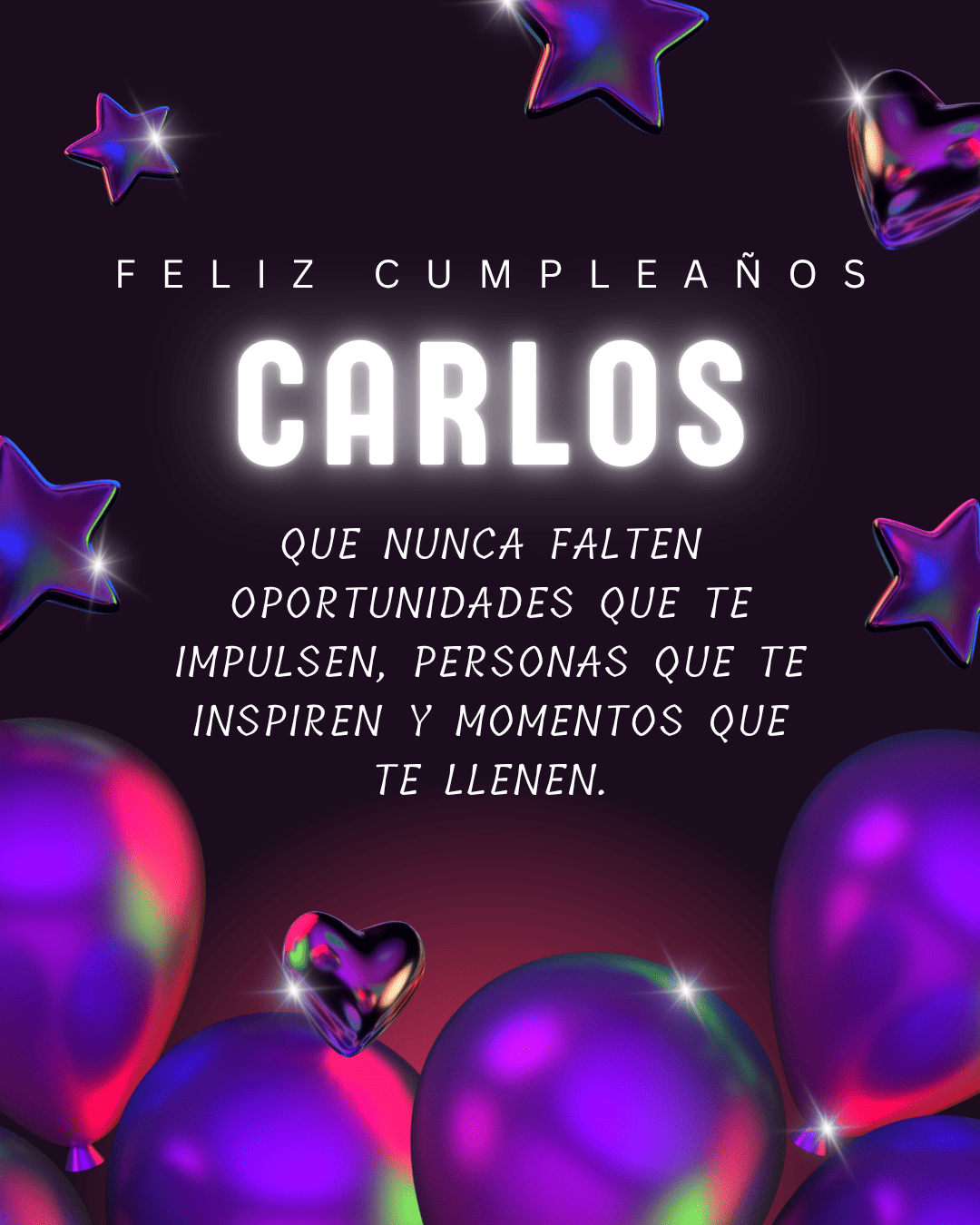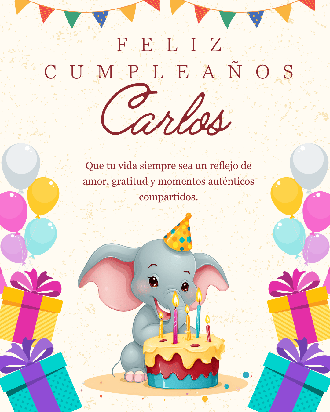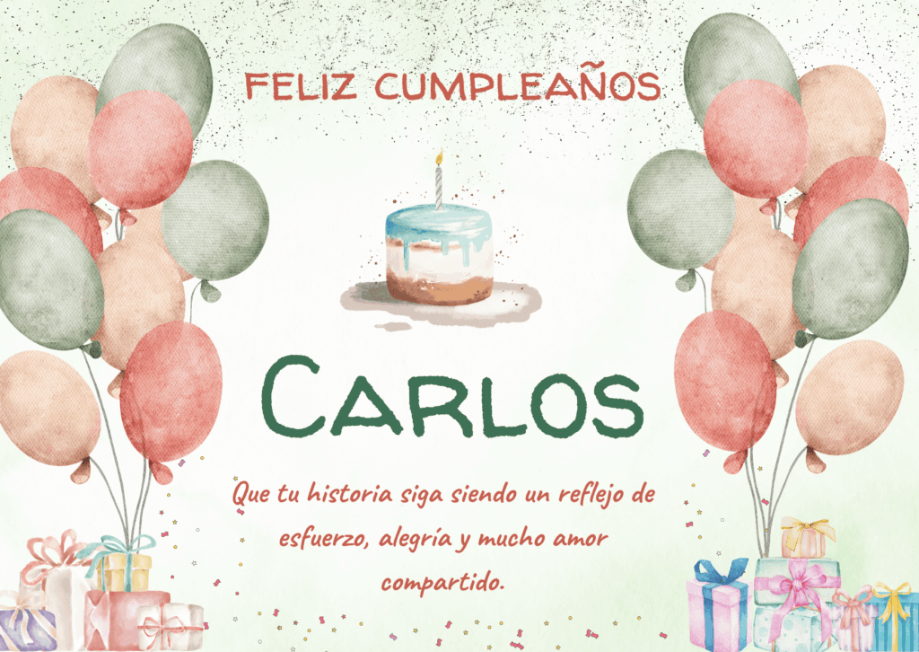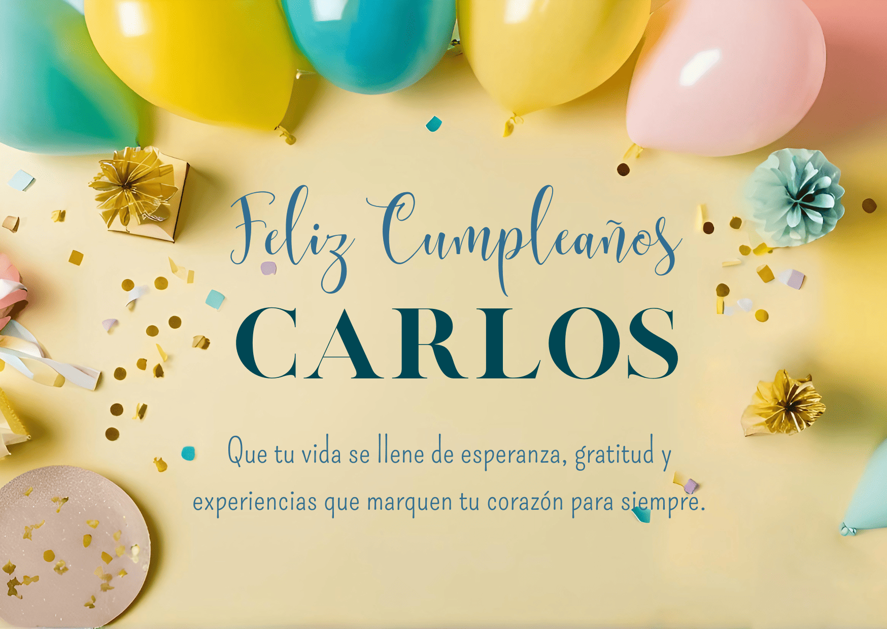 Feliz cumpleaños Carlos. Que cada amanecer de este nuevo año te encuentre motivado, agradecido y listo para conquistar el mundo. No olvides que la felicidad se construye en los pequeños detalles del día a día.