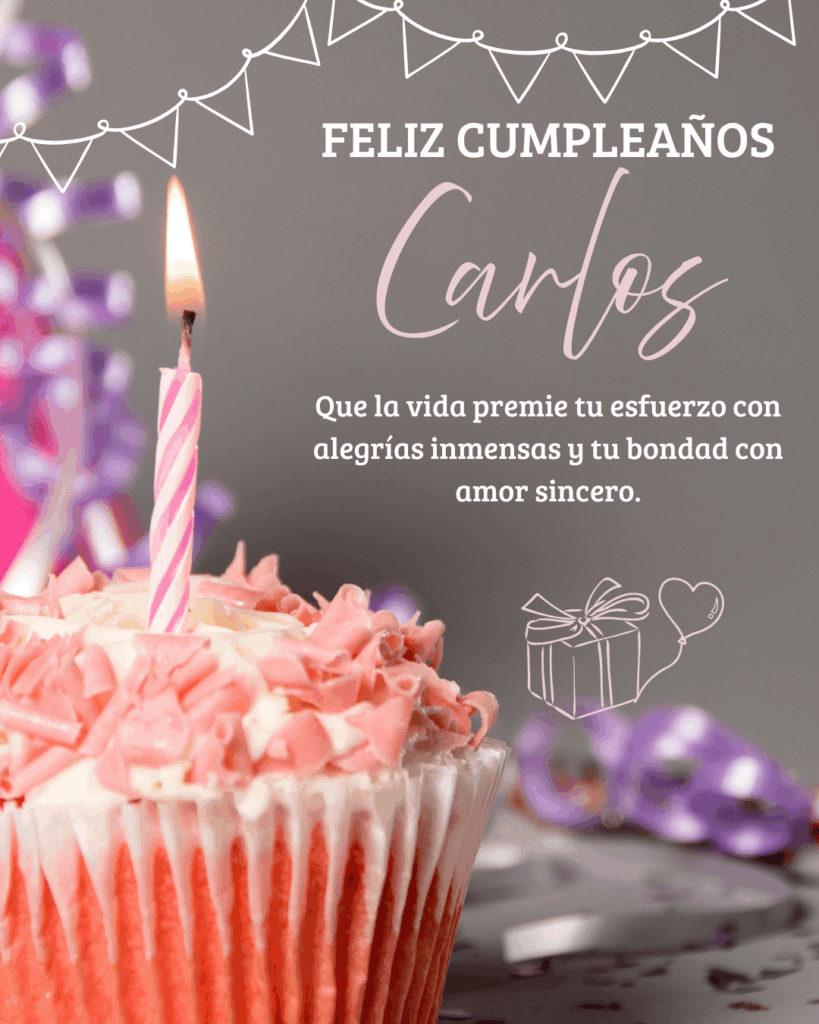 ¿Buscas la frase perfecta para decir feliz cumpleaños Carlos? Aquí encontrarás una selección de mensajes llenos de cariño, inspiración y buenos deseos. Todas las frases están acompañadas de imágenes listas para descargar y compartir. Ya sea para dedicar en persona, por WhatsApp o redes sociales, estas ideas harán que tu felicitación sea especial, sincera y memorable. ¡Encuentra la que mejor refleje tus sentimientos y sorprende a Carlos en su gran día!