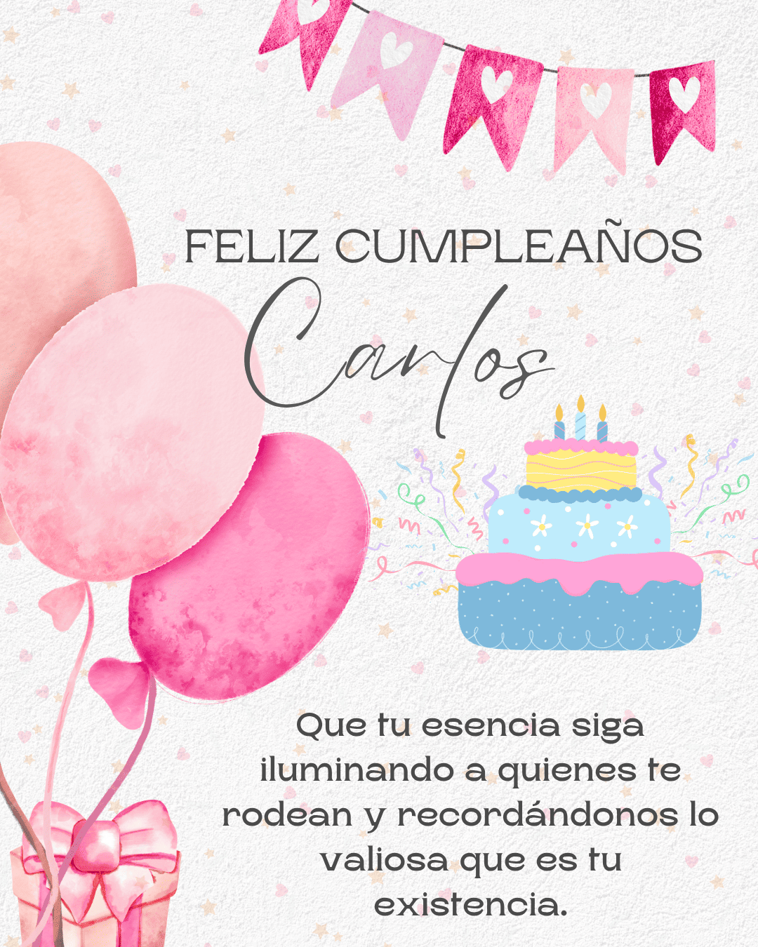 Feliz cumpleaños Carlos. Que este día llegue con motivos para sonreír, abrazos sinceros y recuerdos que duren toda la vida. Eres una persona valiosa, llena de energía y buena vibra.