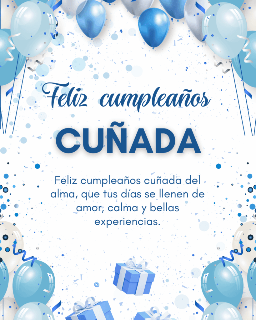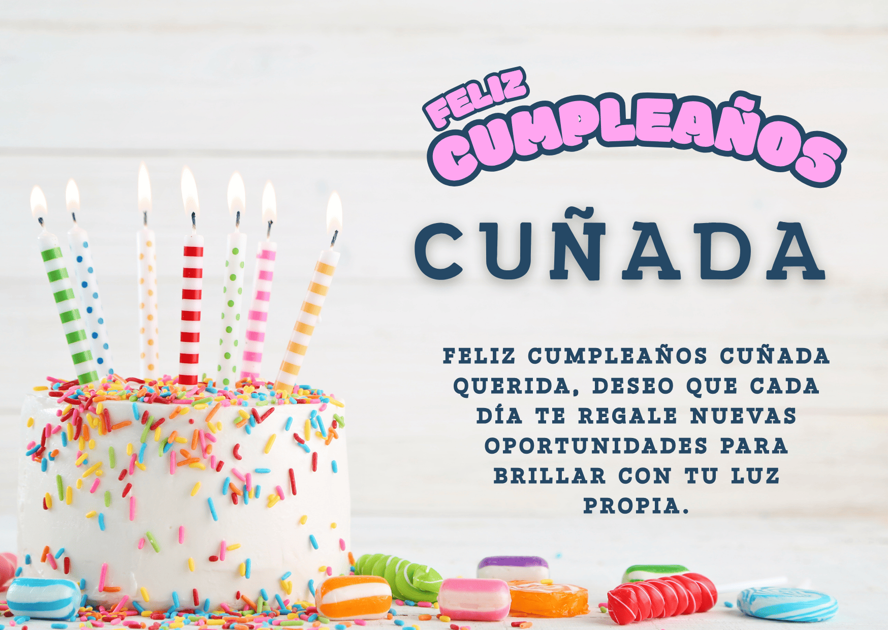 Feliz cumpleaños cuñada. Hoy celebramos a una mujer única, fuerte y llena de luz. Que cada día te acerque más a tus metas y te rodee de personas que te hagan feliz.