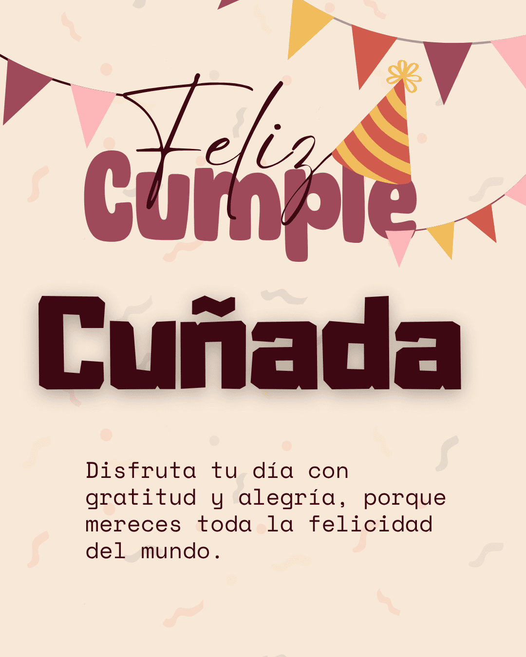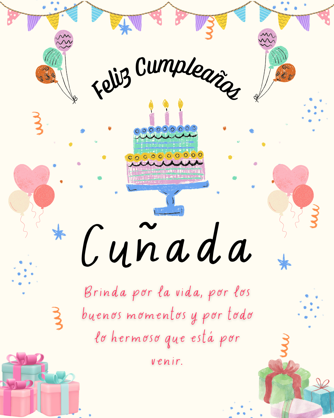Feliz cumpleaños cuñada. Que la alegría te acompañe en cada paso, que tus sueños se hagan realidad y que la vida te colme de bendiciones.