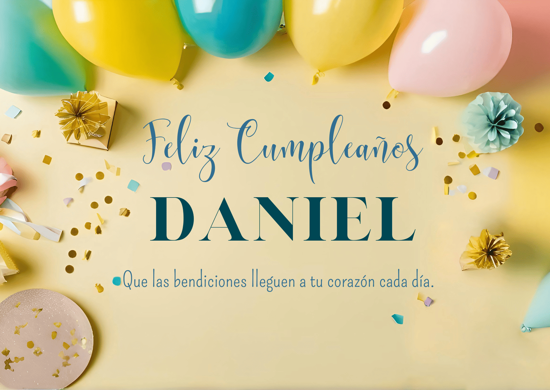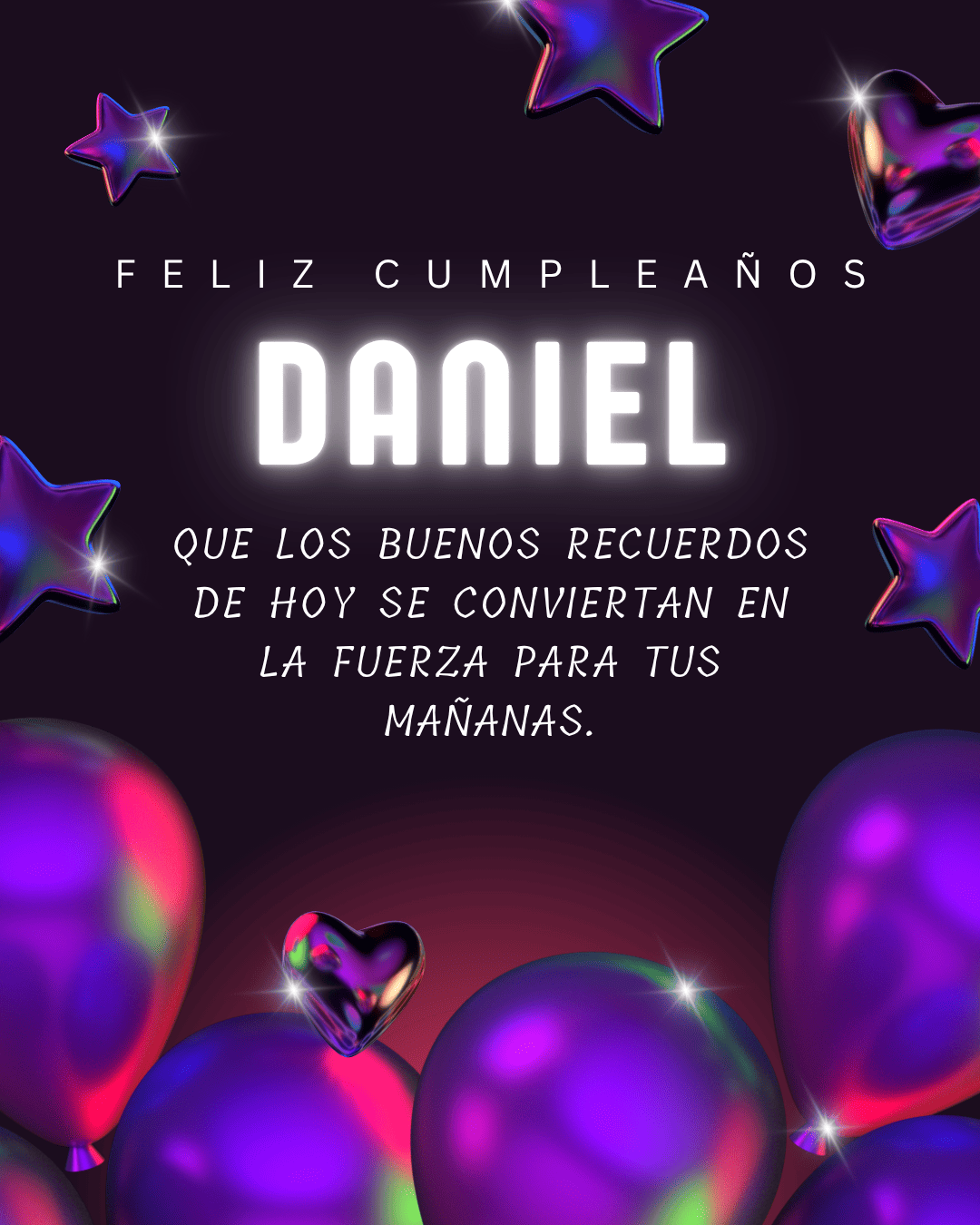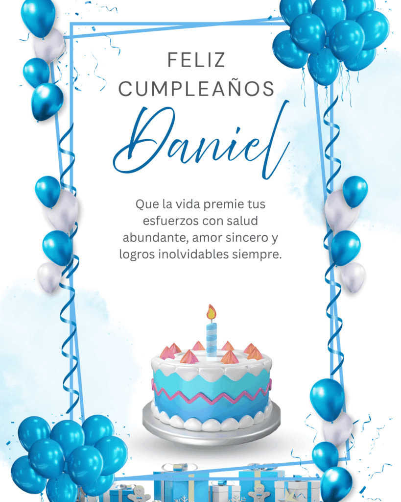 Esperamos que estas frases de feliz cumpleaños Daniel te sirvan para expresar tus mejores deseos de una forma especial. Cada mensaje está pensado para emocionar, inspirar y acompañar con imágenes descargables que puedes compartir fácilmente. Dedícale unas palabras que lleguen al corazón y celebra con él este día tan importante. Vuelve pronto: actualizamos constantemente nuestras frases y diseños para que nunca te falte inspiración al felicitar.