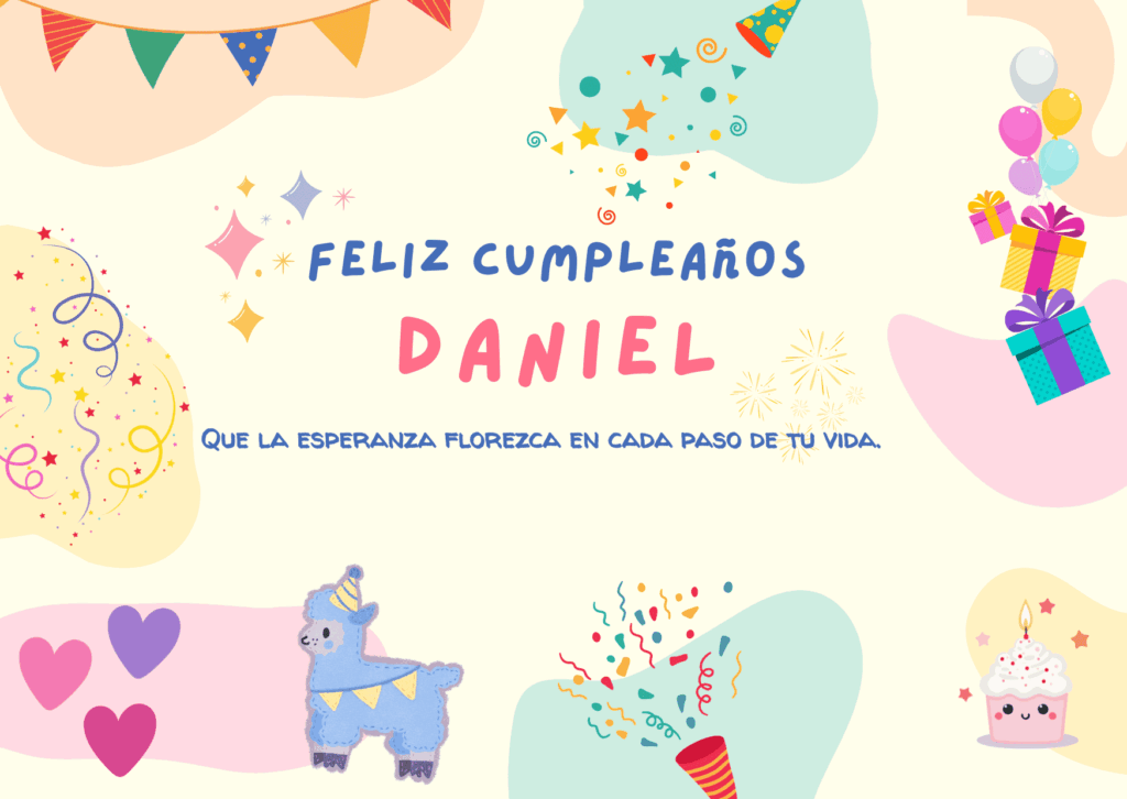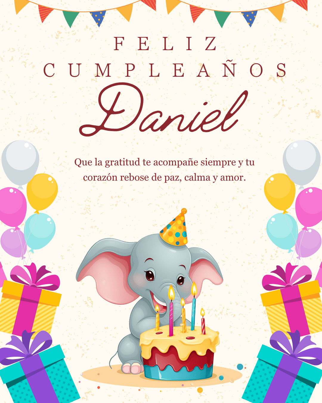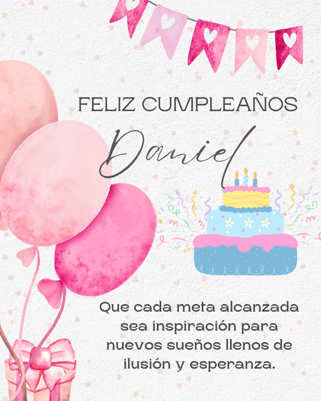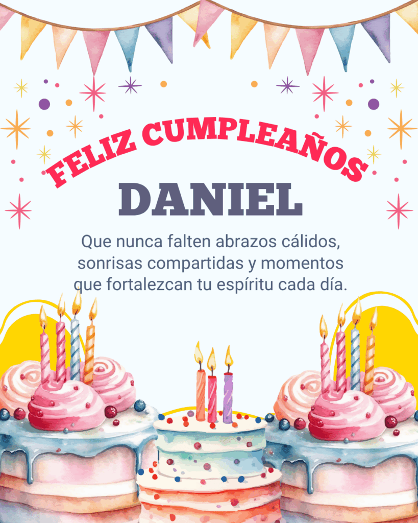 Esperamos que estas frases de feliz cumpleaños Daniel te sirvan para expresar tus mejores deseos de una forma especial. Cada mensaje está pensado para emocionar, inspirar y acompañar con imágenes descargables que puedes compartir fácilmente. Dedícale unas palabras que lleguen al corazón y celebra con él este día tan importante. Vuelve pronto: actualizamos constantemente nuestras frases y diseños para que nunca te falte inspiración al felicitar.