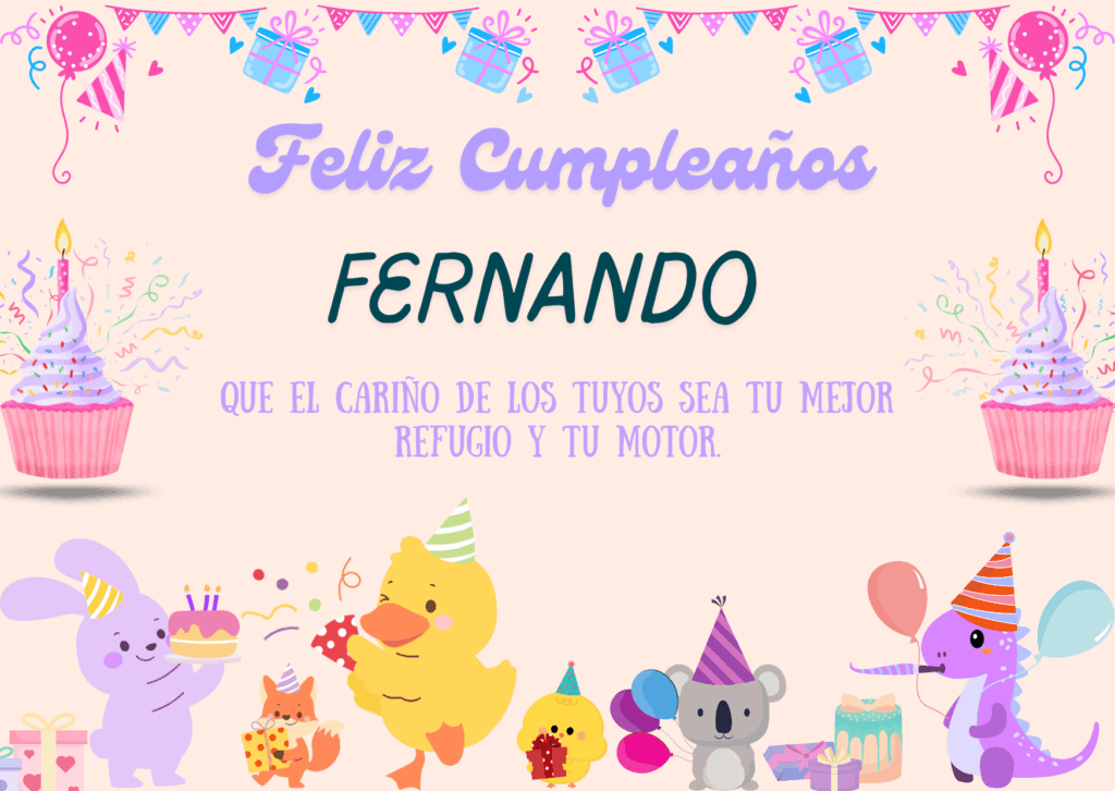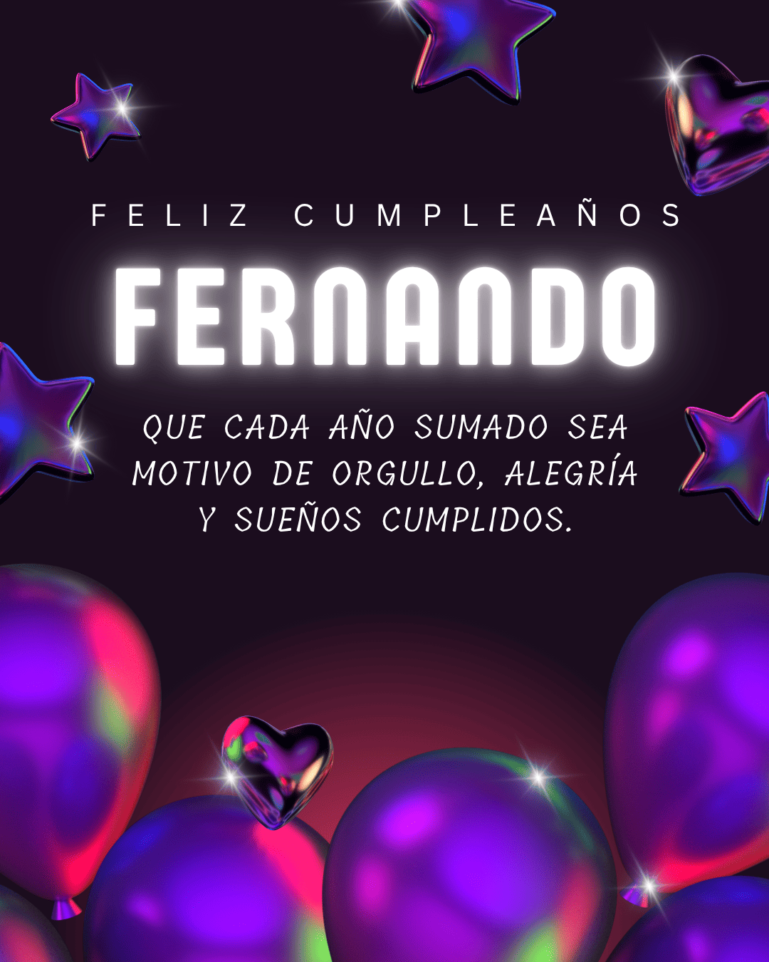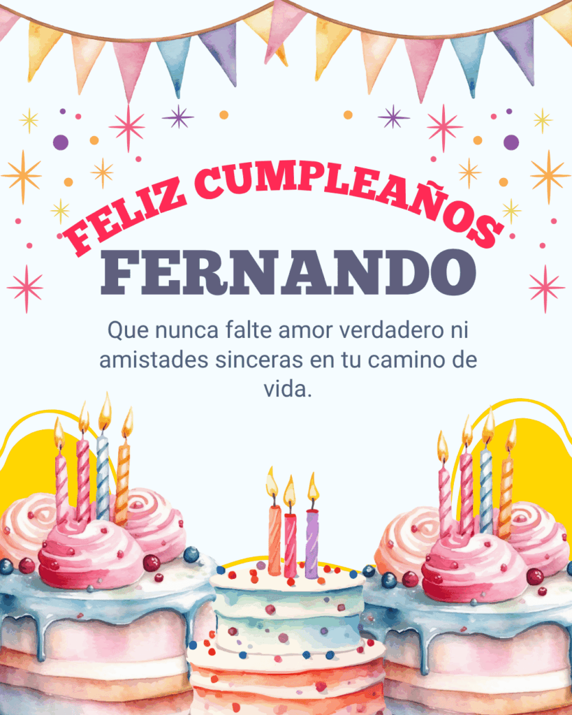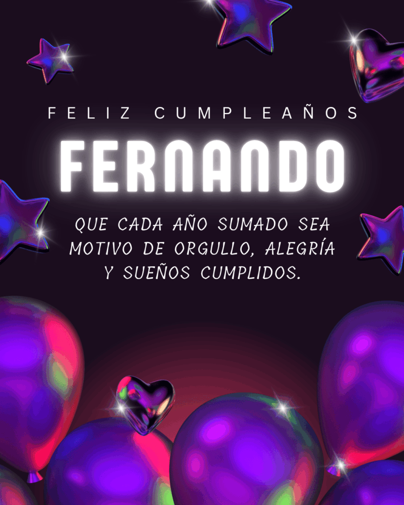 Esperamos que estas frases de feliz cumpleaños Fernando te ayuden a expresar tus mejores deseos en este día tan importante. Descarga las imágenes, comparte las frases o guárdalas para dedicar en cualquier momento. Cada palabra está pensada para emocionar y celebrar con alegría. Vuelve pronto: añadimos nuevas frases, ideas y diseños para que nunca te falte inspiración al felicitar. ¡Haz que su cumpleaños sea inolvidable y lleno de buenas vibras!