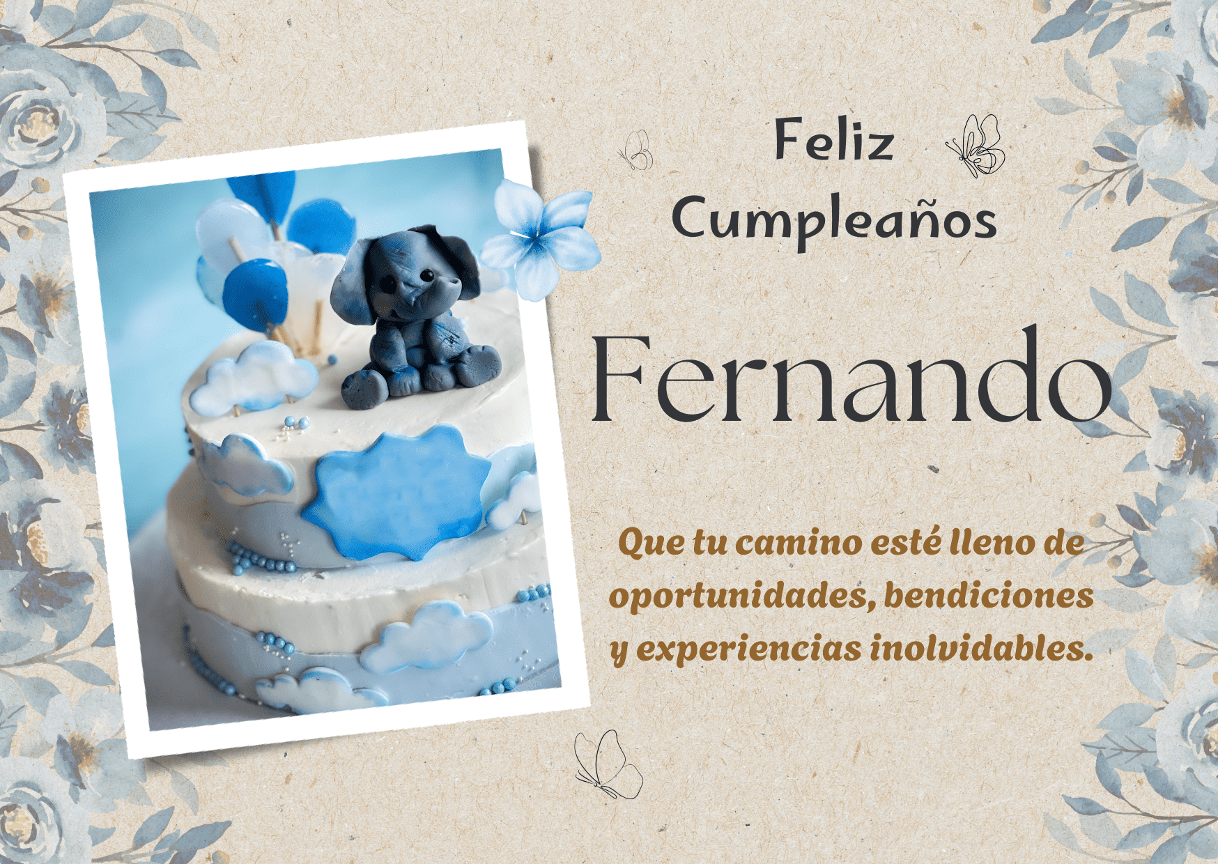 Feliz cumpleaños Fernando. Hoy todo gira en torno a ti: tus risas, tus logros y ese espíritu optimista que contagia a todos los que te rodean. Que la felicidad sea tu compañera constante.