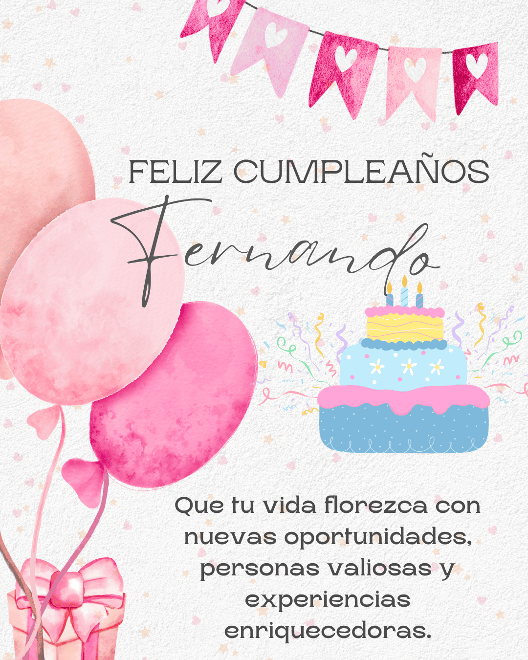 Feliz cumpleaños Fernando. Hoy la vida te regala una nueva oportunidad para soñar, crecer y disfrutar de todo lo que te hace feliz. Que cada día esté lleno de motivos para sonreír y personas que te inspiren a seguir adelante.