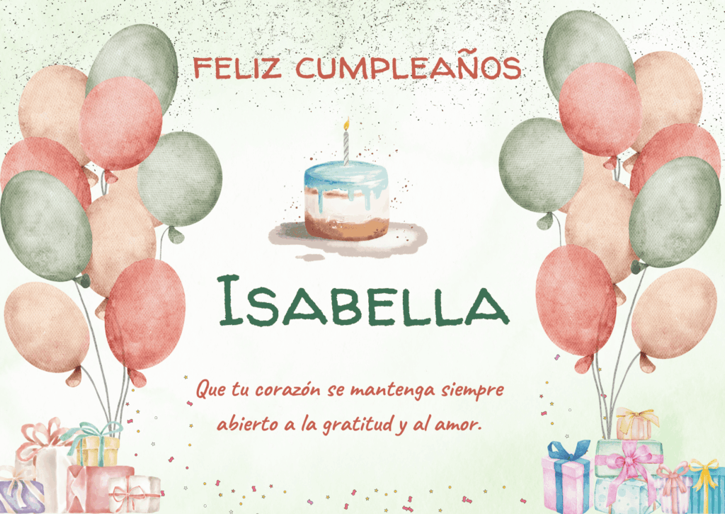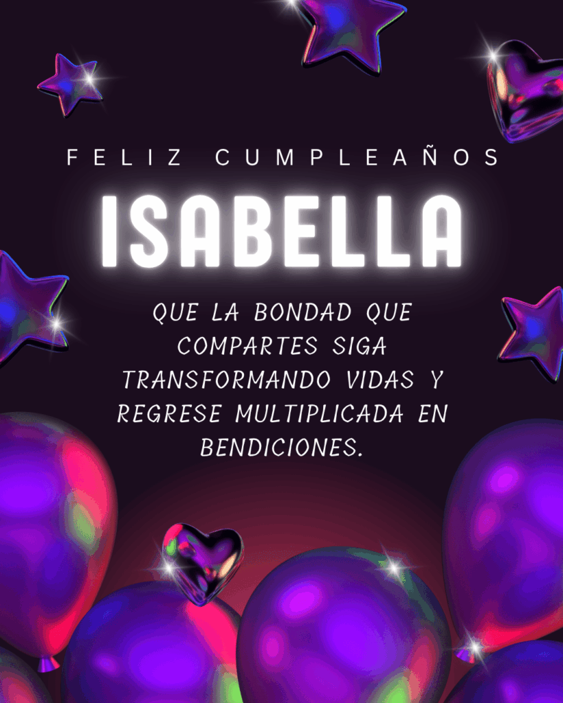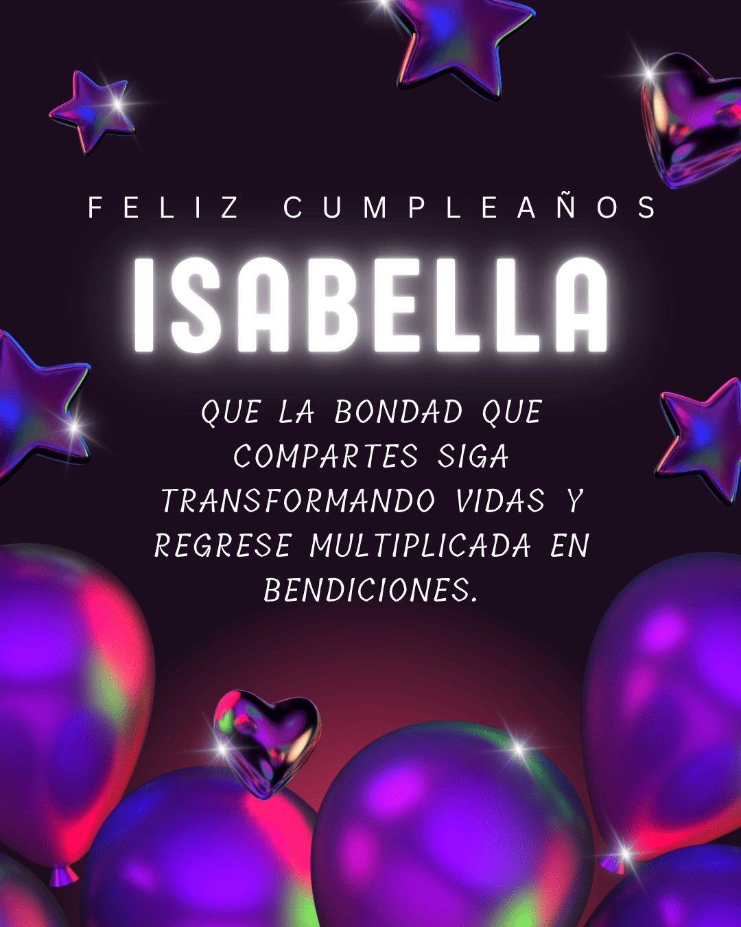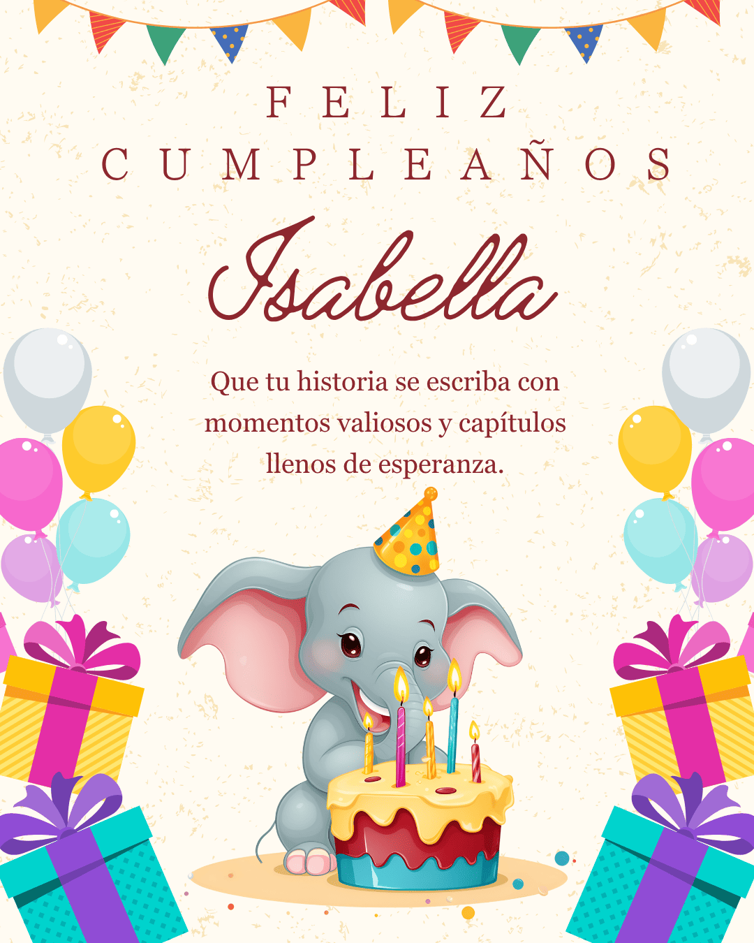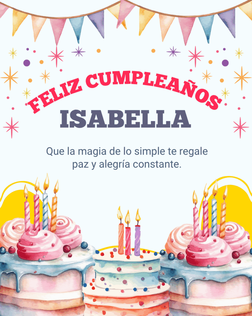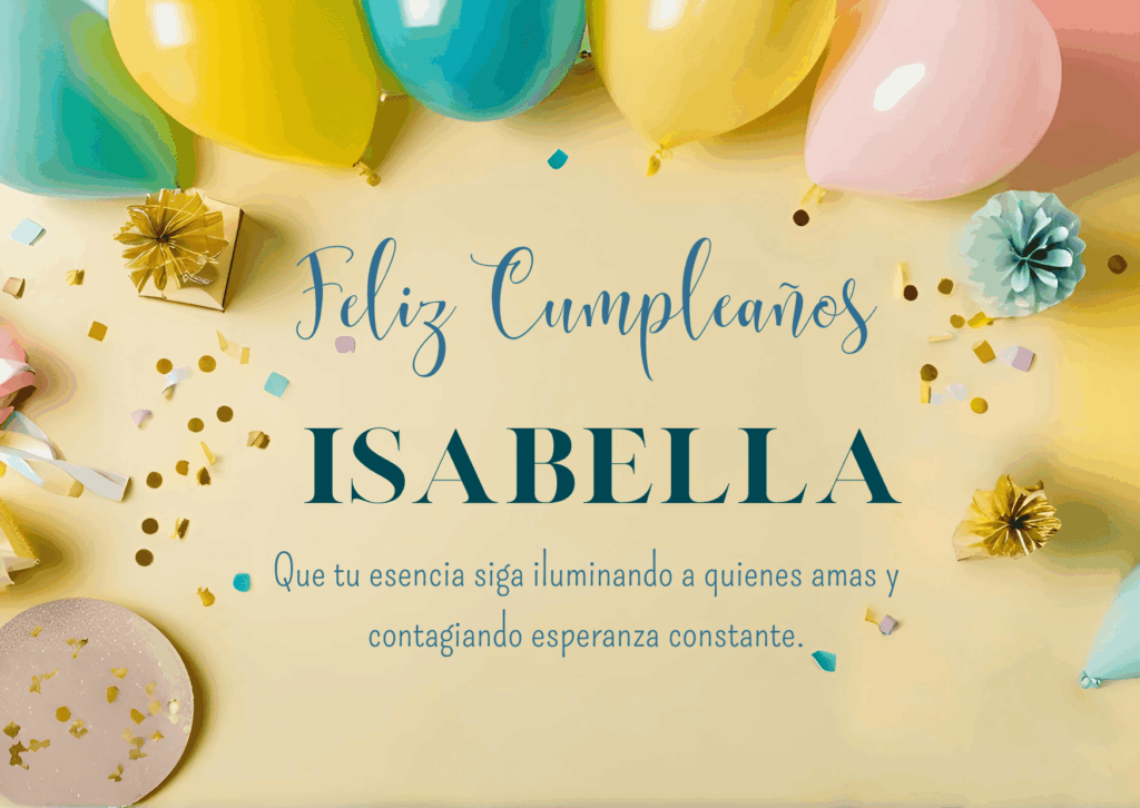 Esperamos que estas frases de feliz cumpleaños Isabella te ayuden a encontrar el mensaje perfecto para acompañar las imágenes disponibles para descargar. Cada texto ha sido creado para transmitir cercanía, emoción y buenos deseos de forma natural y sincera. Elige la frase que más conecte contigo, compártela y convierte este cumpleaños en un momento especial, lleno de palabras bonitas y recuerdos que permanezcan en el tiempo.