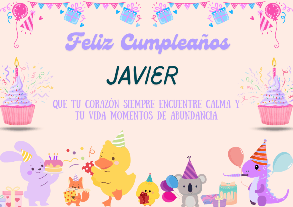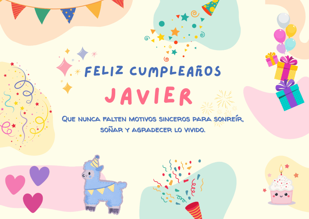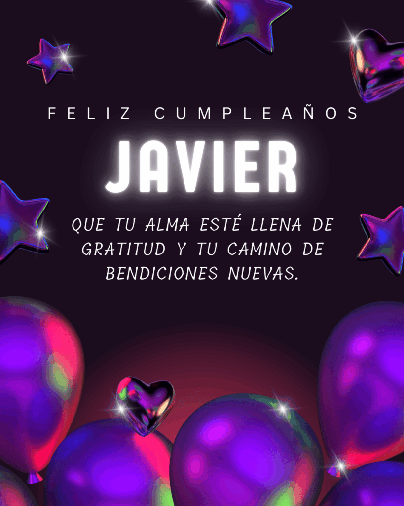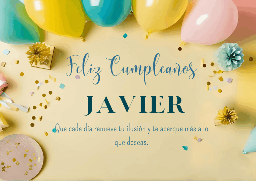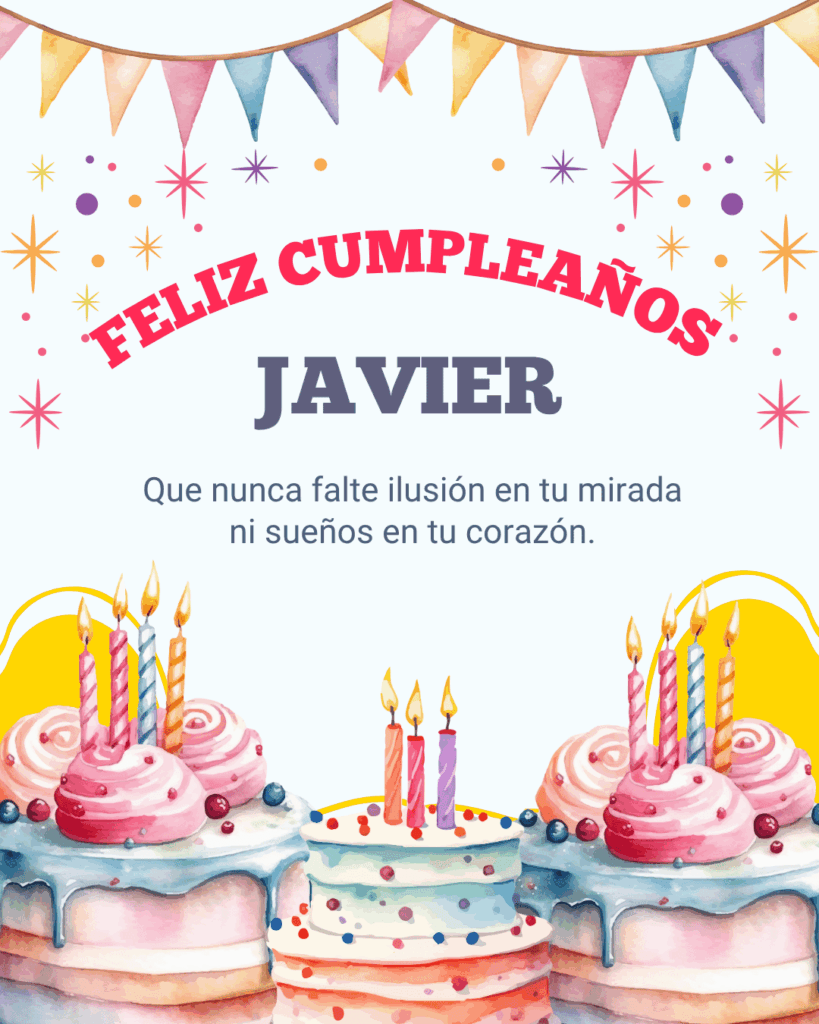Estas frases de feliz cumpleaños Javier fueron creadas para acompañar imágenes, mensajes y dedicatorias especiales. Su objetivo es ayudarte a expresar cariño, gratitud y buenos deseos de forma emotiva y profunda. Ya sea para un amigo, un familiar o alguien muy cercano, aquí encontrarás palabras que conectan y transmiten sentimiento. Comparte una de estas frases y haz que su día esté lleno de emoción, alegría y momentos inolvidables.