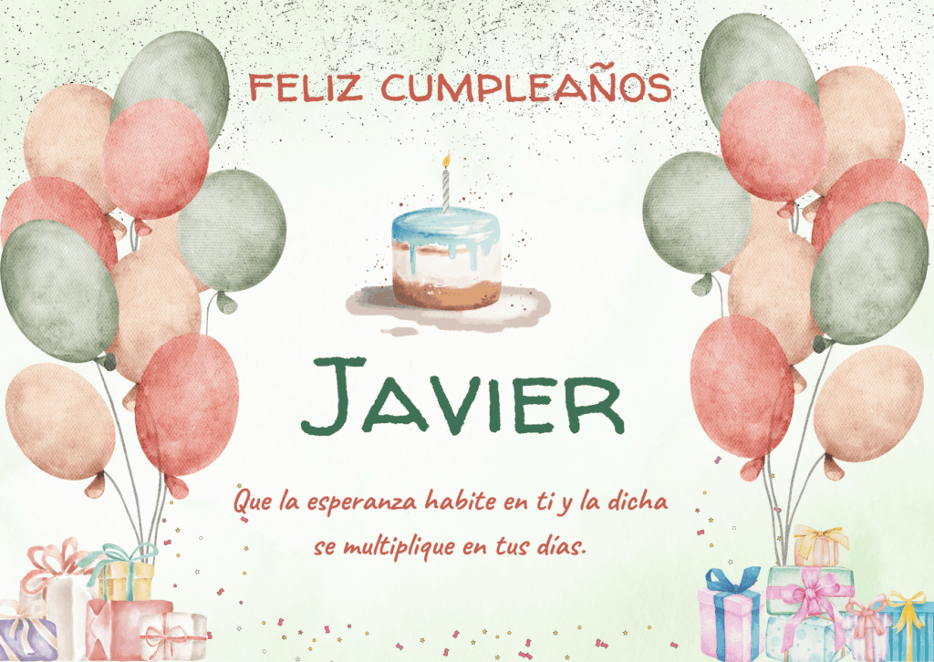 Feliz cumpleaños, Javier. Hoy quiero desearte un año lleno de metas cumplidas, momentos felices y mucha paz interior. Eres una persona que inspira con tu esfuerzo y tu forma auténtica de ver la vida.