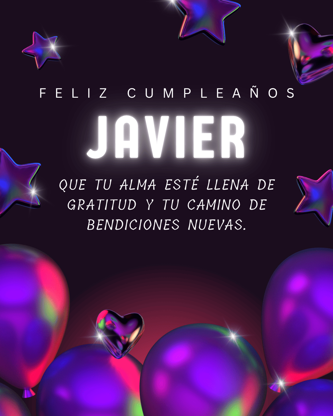 Feliz cumpleaños, Javier. Hoy comienza un nuevo capítulo lleno de oportunidades y momentos que te sorprenderán para bien. Tu forma de entregarte a tus metas y tu fortaleza interior son admirables.