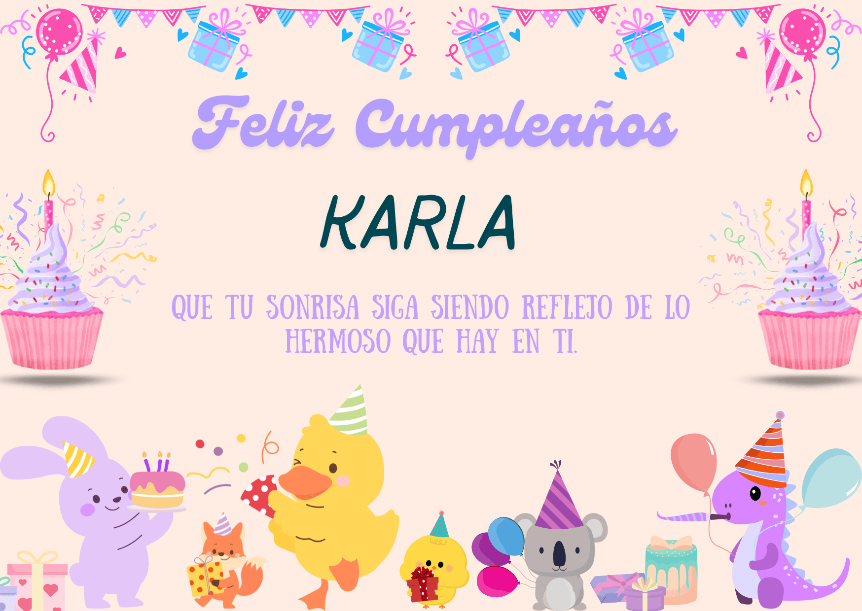 Feliz cumpleaños, Karla. Hoy es un día especial para ti, pero también para quienes tenemos la fortuna de conocerte. Tu dulzura, tu entusiasmo y tu luz hacen que todo sea mejor.