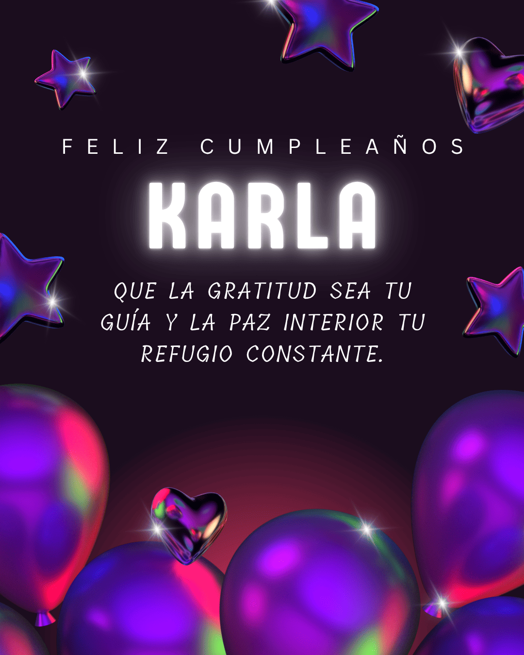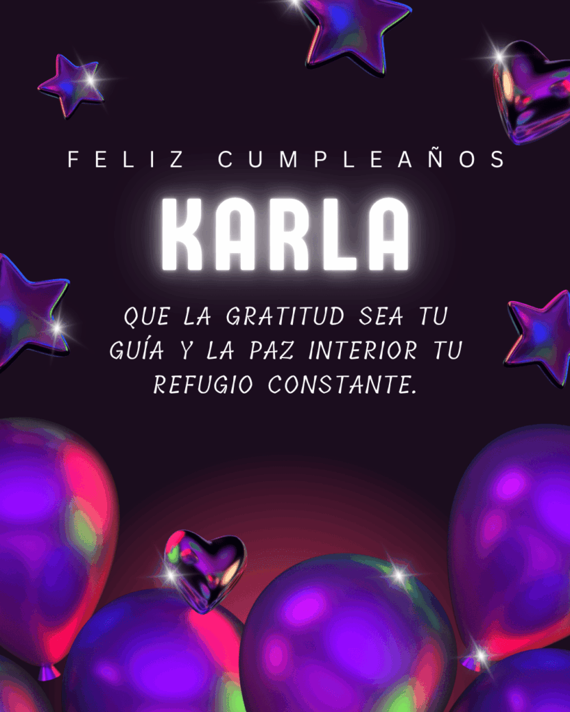 Feliz cumpleaños, Karla. Que hoy recibas el cariño sincero de todas las personas que valoran tu presencia en sus vidas. Tu corazón noble es un tesoro.