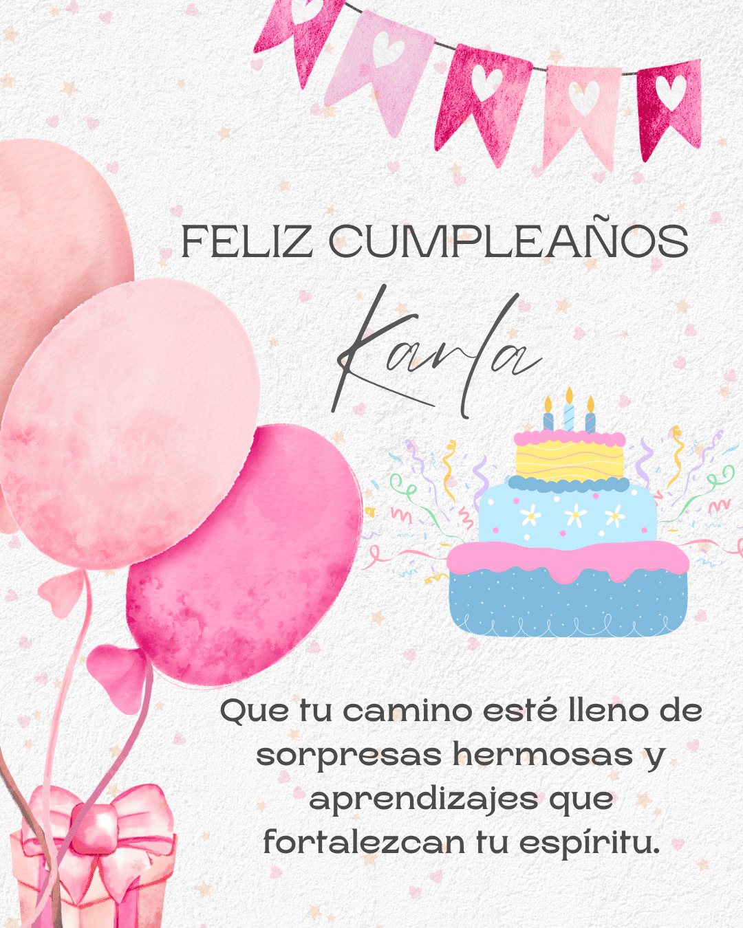 Feliz cumpleaños, Karla. Hoy celebro tu luz, tu alegría y esa energía tan bonita que transmites a todos los que te rodean. Eres una persona especial, llena de sueños, fortaleza y bondad.