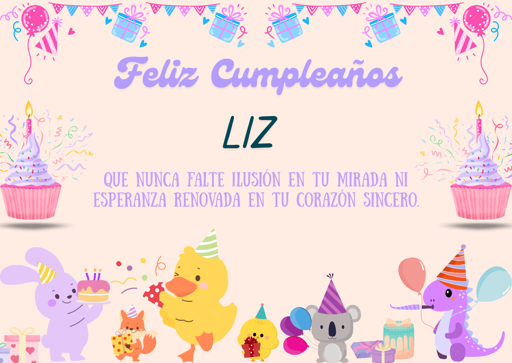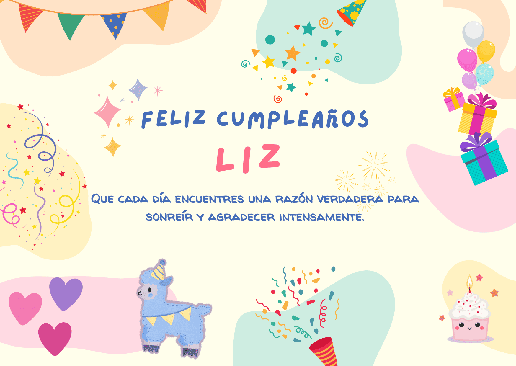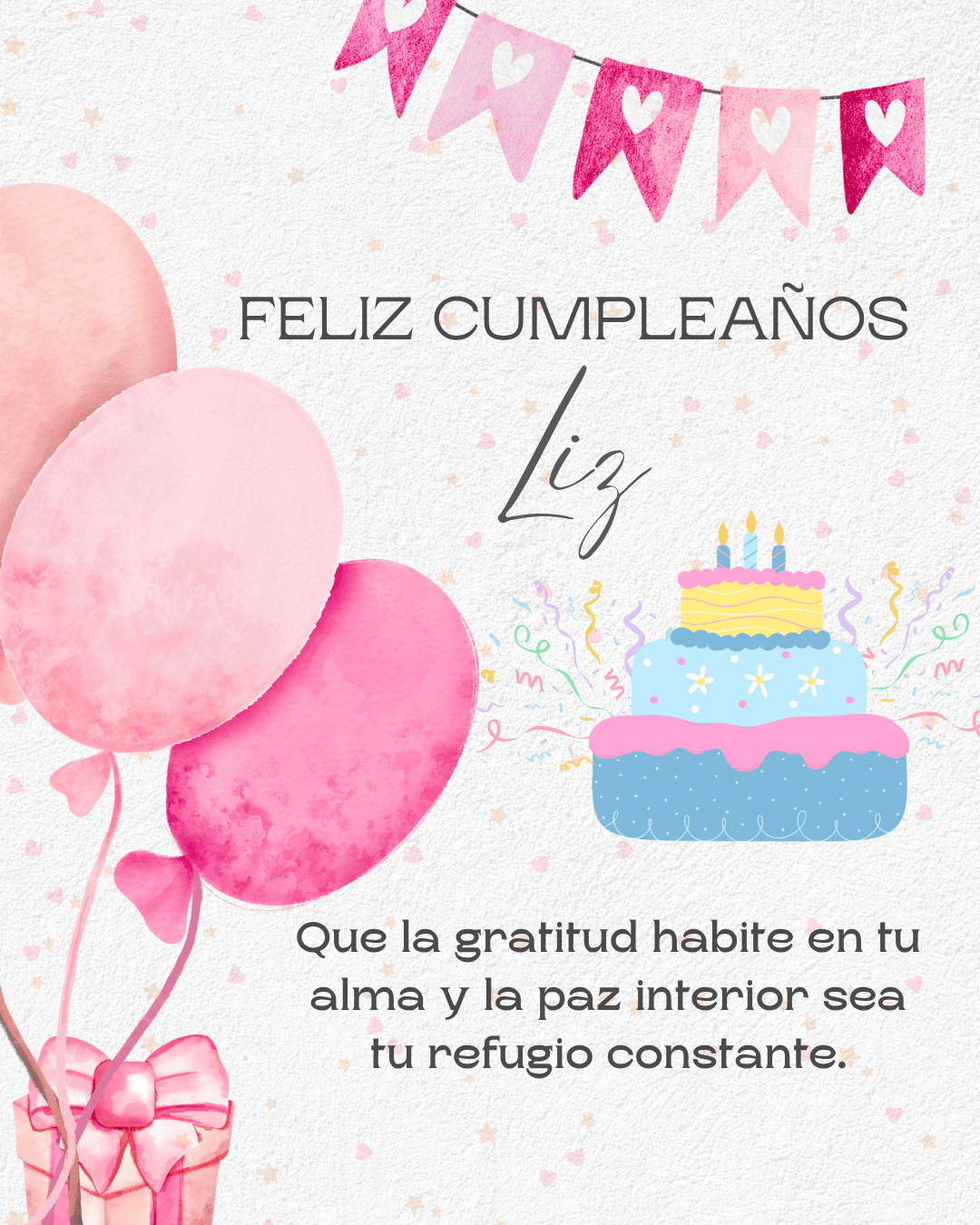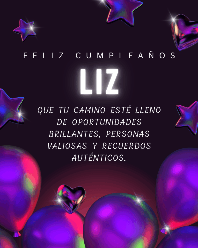 Liz, en este feliz cumpleaños Liz quiero desearte un día tan bonito como tu forma de ser. Que cada mensaje y cada gesto te recuerden lo importante que eres para quienes te rodean.