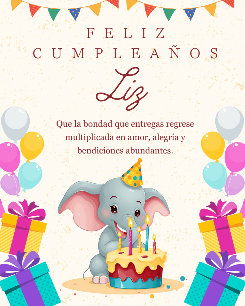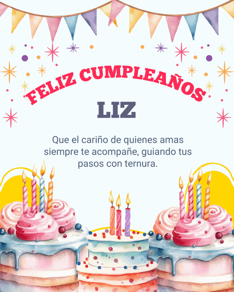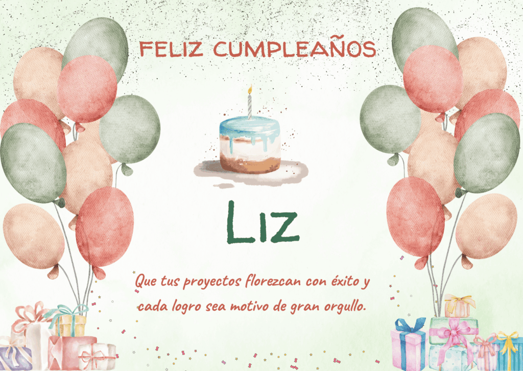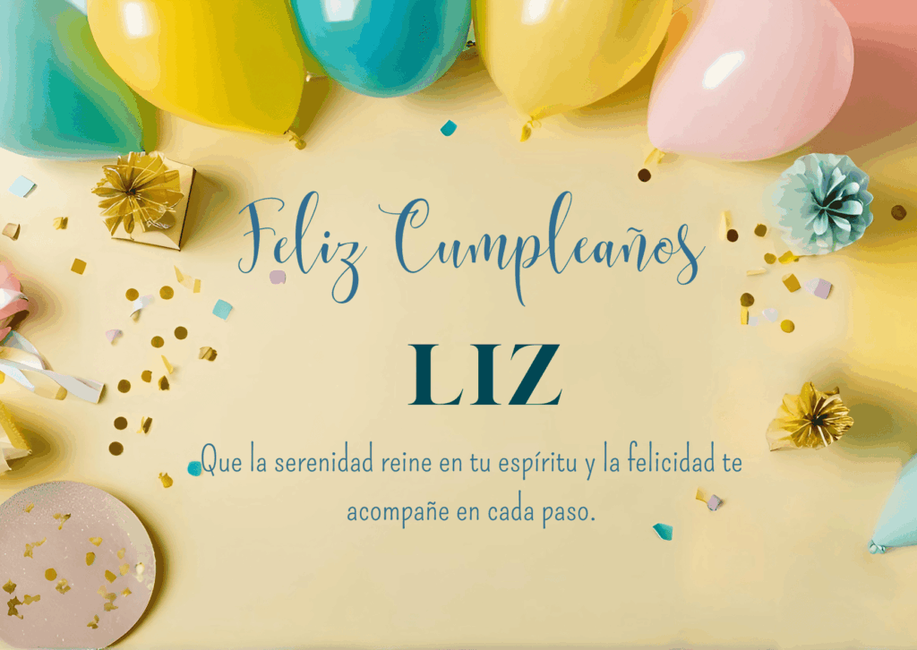 Liz, hoy es tu día y merece ser especial. Que este feliz cumpleaños Liz llegue cargado de buenas energías, risas compartidas y momentos sencillos que lo hagan inolvidable.