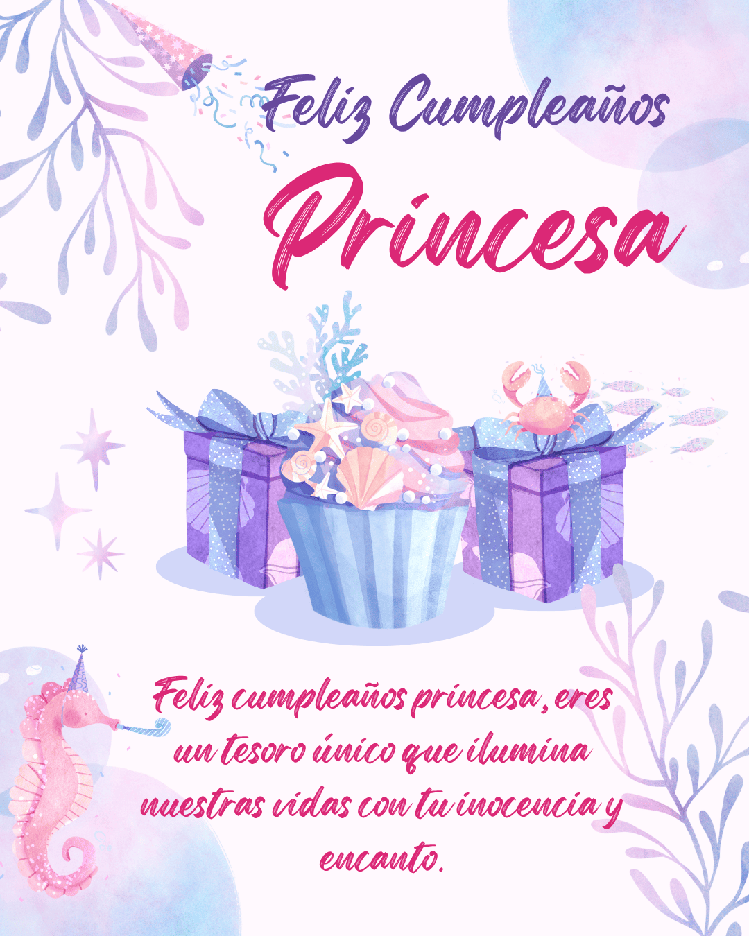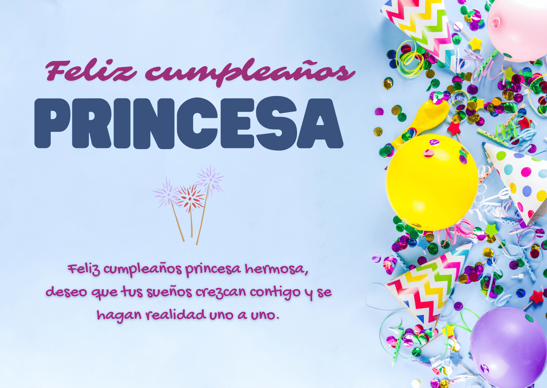 Feliz cumpleaños princesa. Hoy es el día más bonito del año, porque celebramos a una niña llena de luz, sueños y alegría.