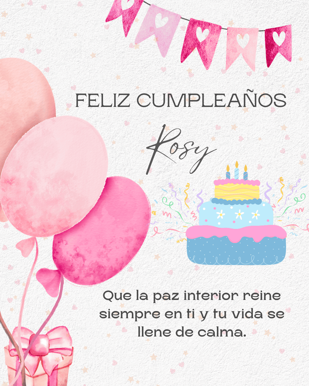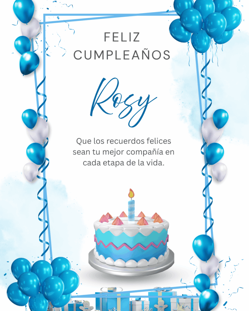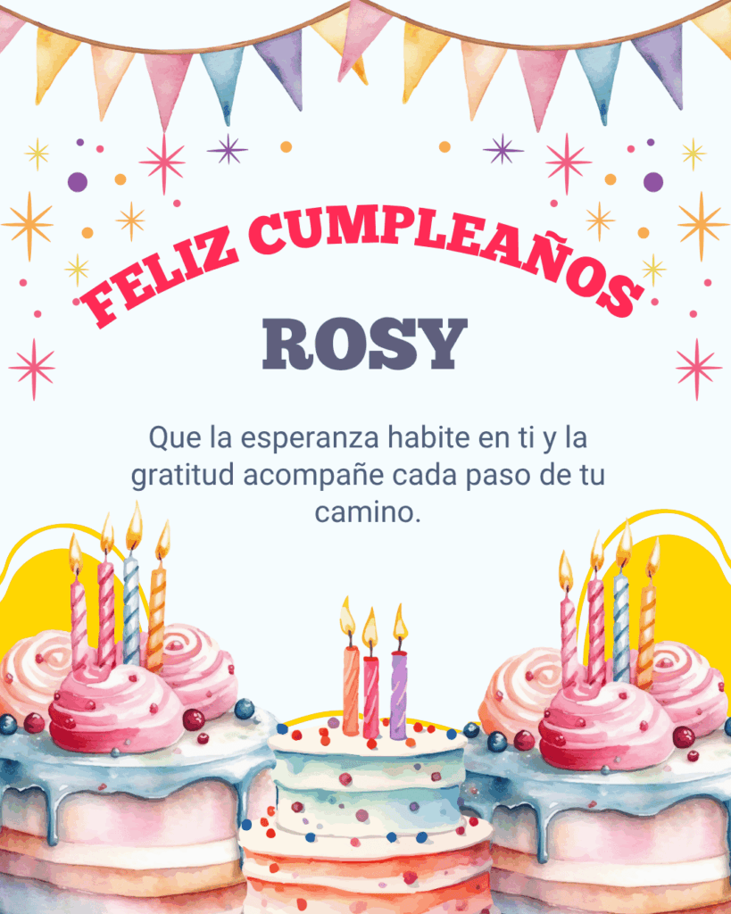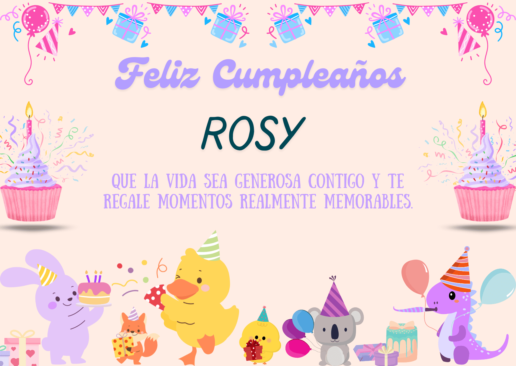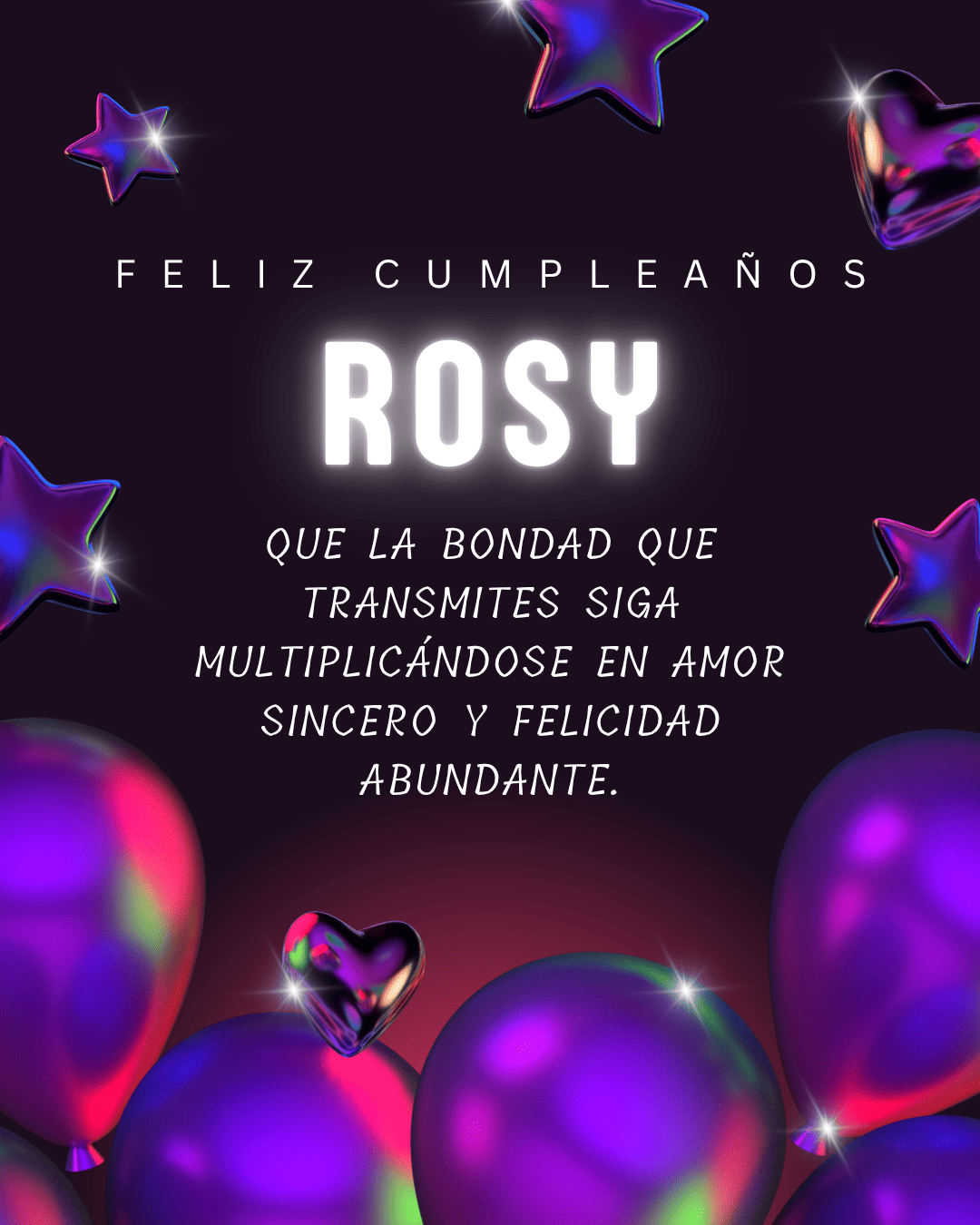 Rosy, en este feliz cumpleaños Rosy quiero desearte un día lleno de luz y buenas energías. Que cada mensaje y cada detalle te recuerden lo importante que eres para quienes te rodean.