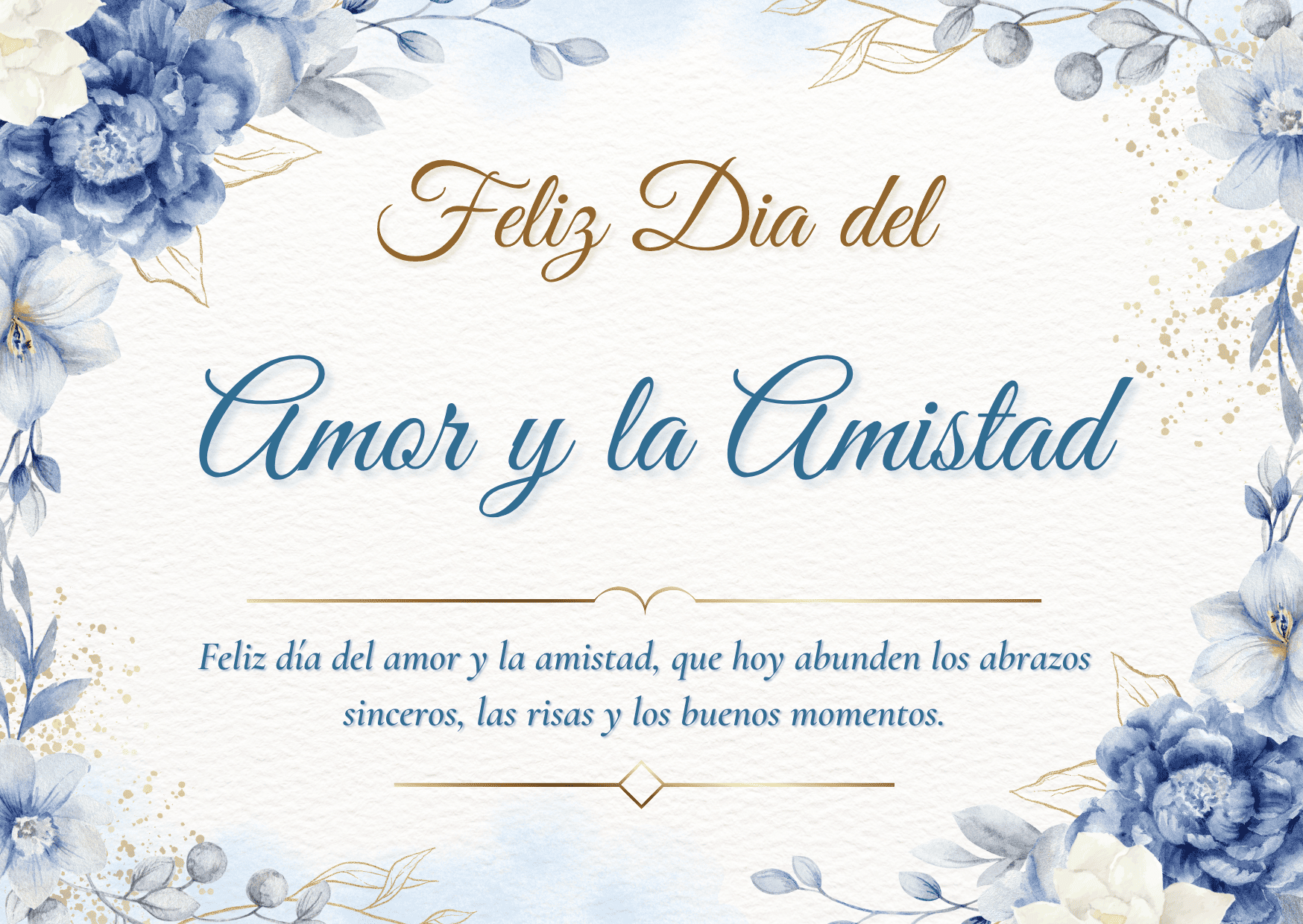 Feliz Día del Amor y la Amistad. Hoy te mando bendiciones que se conviertan en sonrisas, abrazos y gestos llenos de cariño. Este día no trata solo de celebrar, sino de reconocer lo valiosa que es la gente que te hace sentir bien.