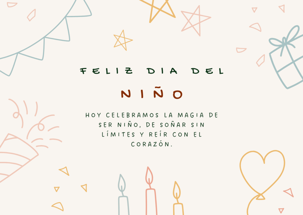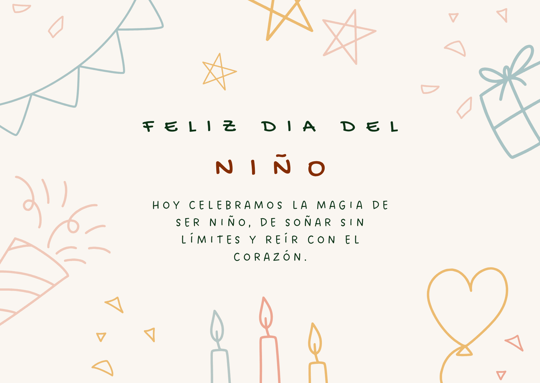 Feliz día del niño. Hoy celebramos a los pequeños héroes que llenan el mundo de risas, curiosidad y esperanza. Cada sonrisa tuya ilumina el día de quienes te rodean.