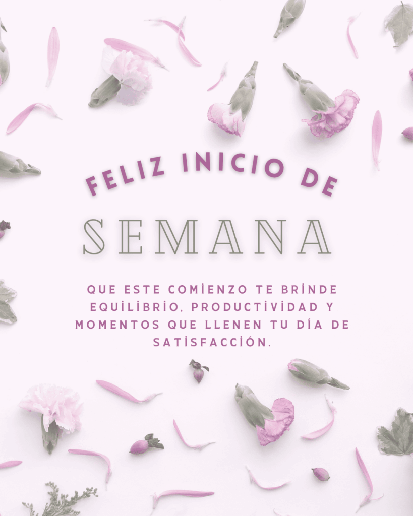 Feliz inicio de semana. Deja atrás el cansancio y las preocupaciones del pasado. Esta semana llega limpia, lista para llenarse de experiencias positivas.