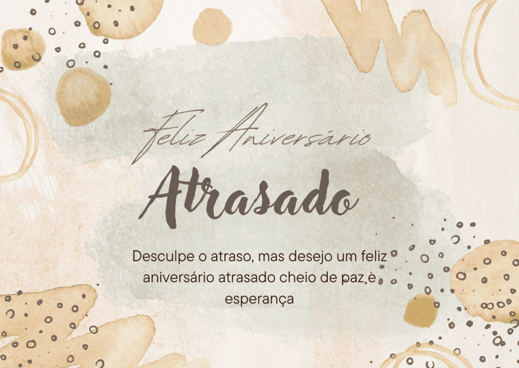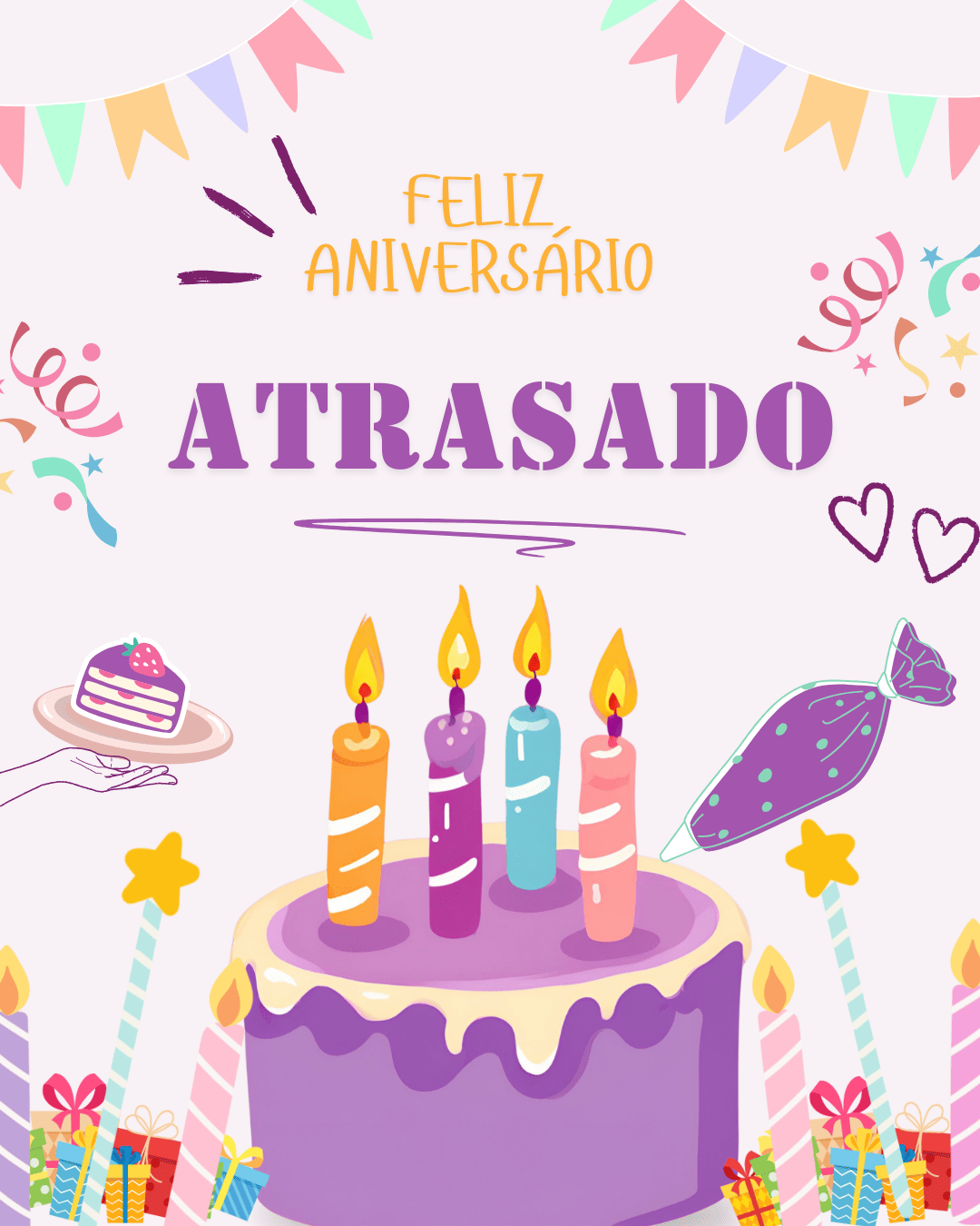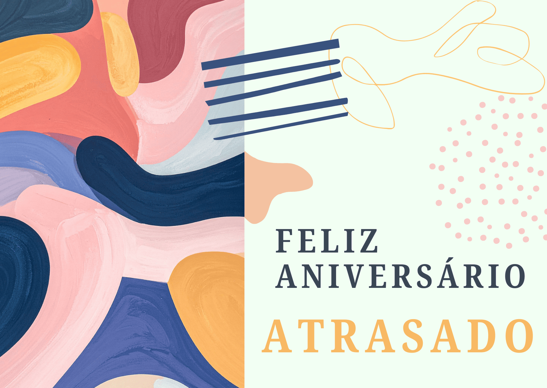 Feliz aniversário atrasado! Eu perdi o dia, mas não perdi a vontade de te desejar um ano incrível. Que você siga firme nos seus objetivos, sem esquecer de cuidar de você e de aproveitar o caminho.