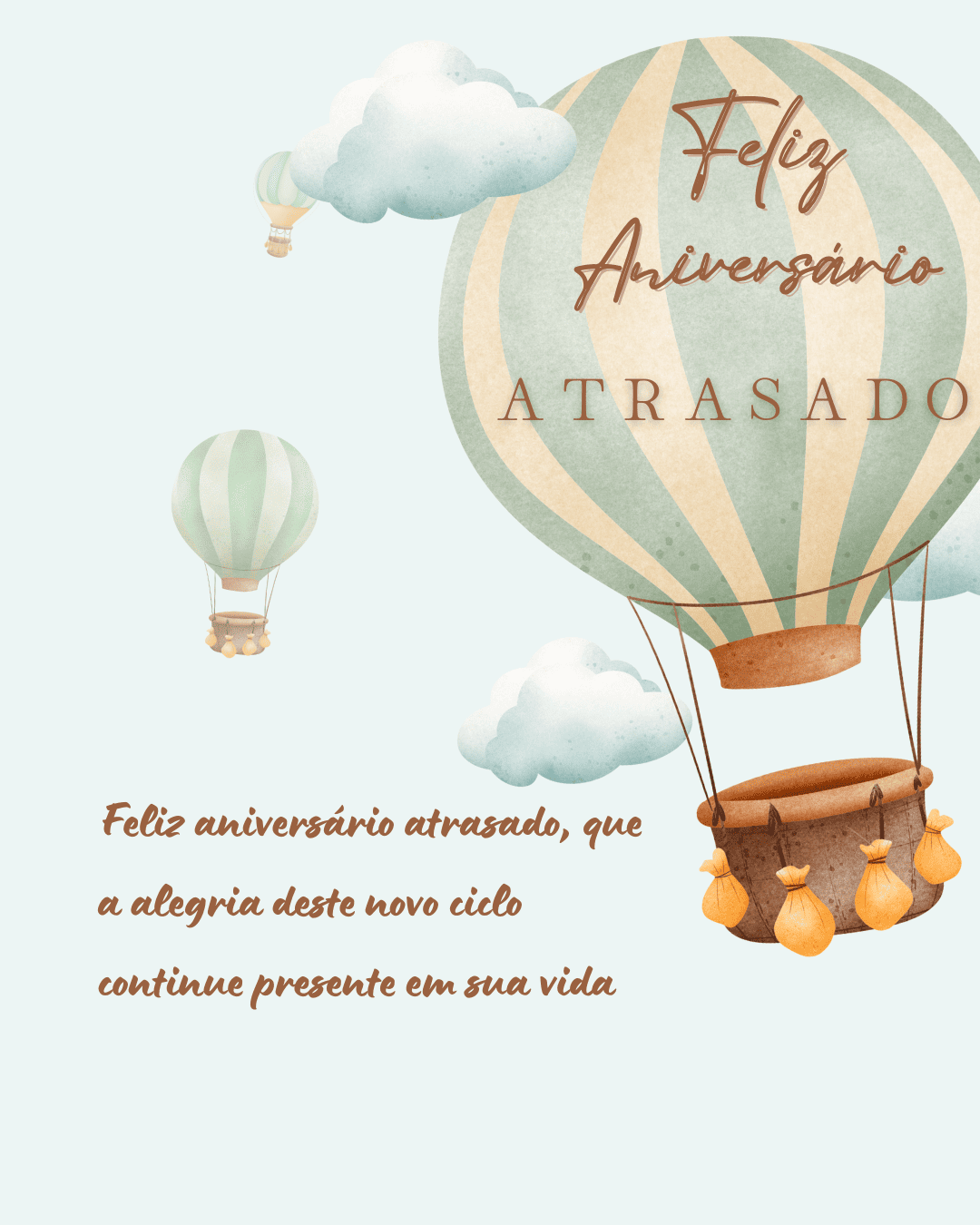Que venham oportunidades certas, amizades sinceras e momentos de paz. E que você se sinta valorizado(a) e amado(a) todos os dias. Desculpa o atraso, e parabéns! Que seu ciclo seja inesquecível.