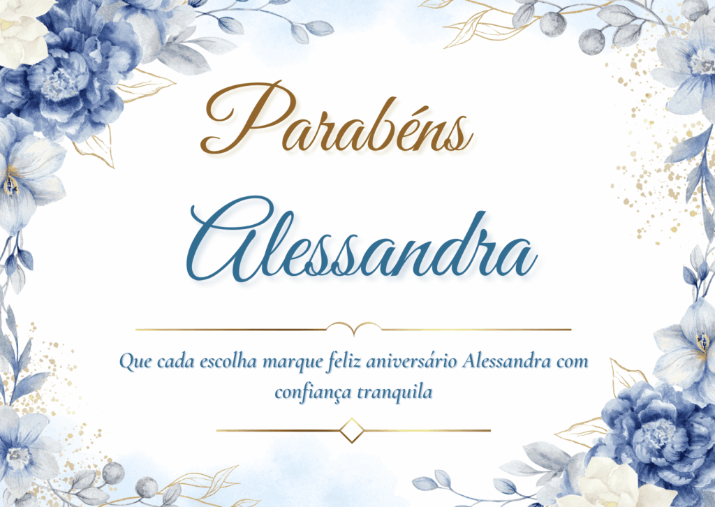 Alessandra, eu poderia te mandar um “parabéns” simples, mas você merece palavras que toquem o coração. Você tem uma luz bonita, que aparece no seu sorriso e no cuidado com as pessoas. Feliz aniversário Alessandra, que seu dia seja especial de verdade.