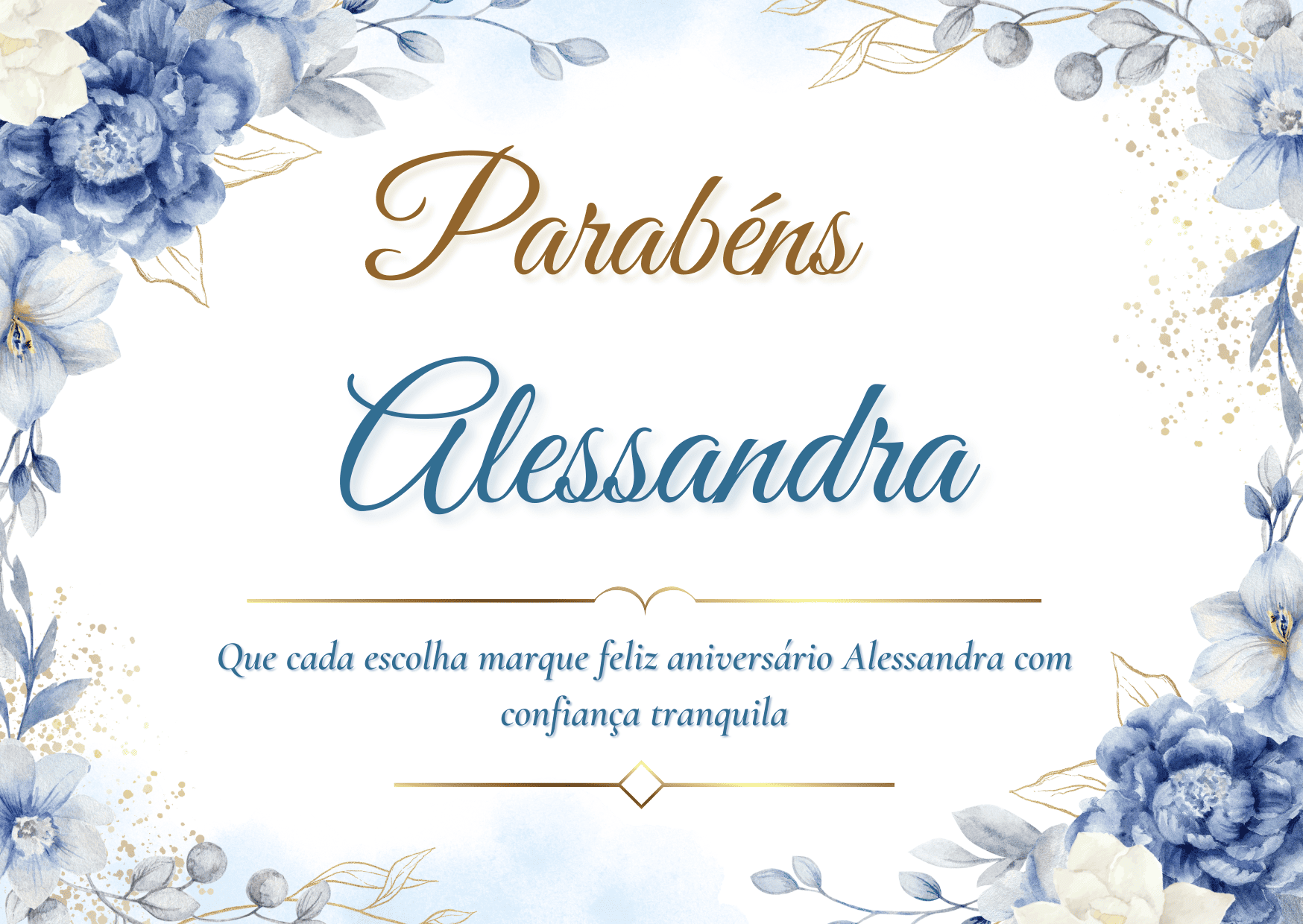 Feliz aniversário Alessandra! Que a vida te abrace com um ano cheio de bênçãos, oportunidades e paz. Você merece viver coisas lindas, cercada de amor e de pessoas que te façam bem.