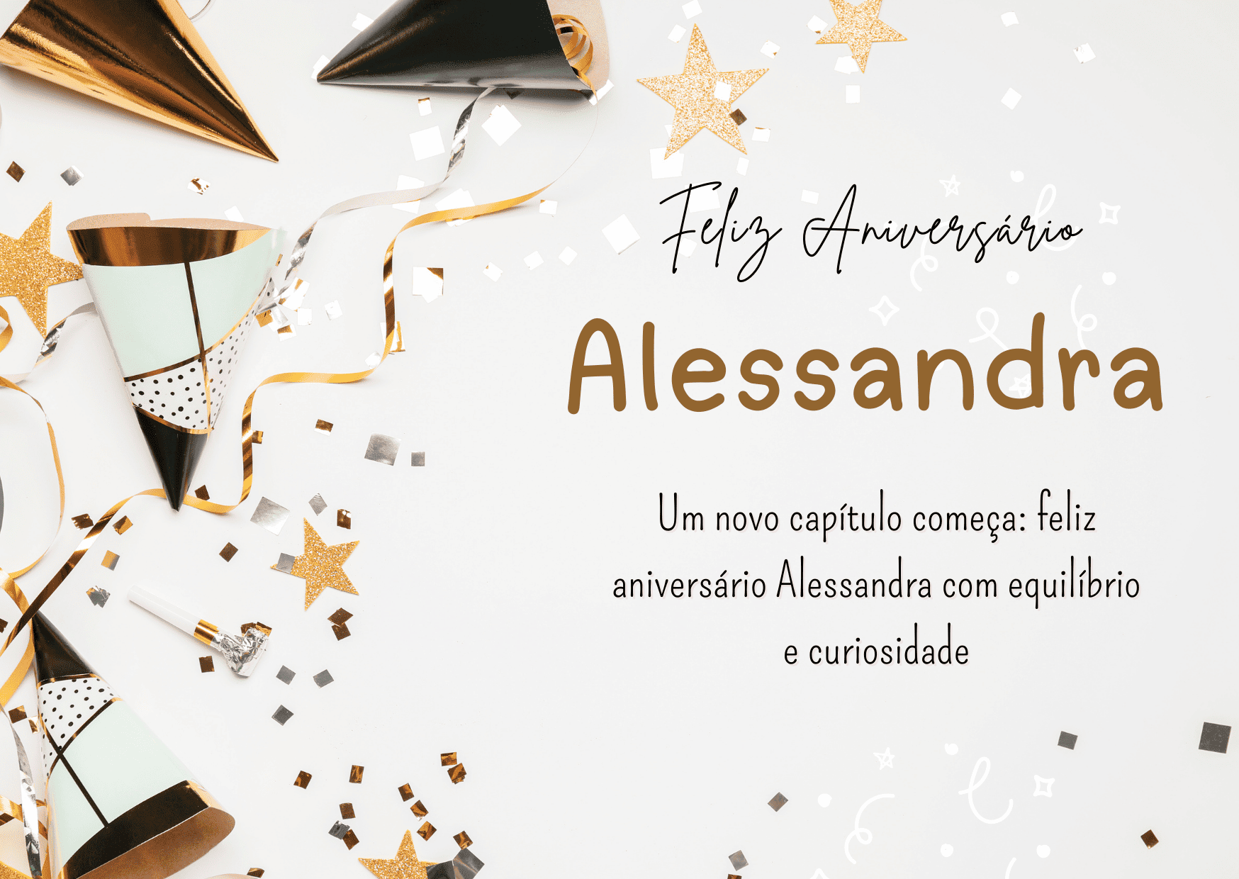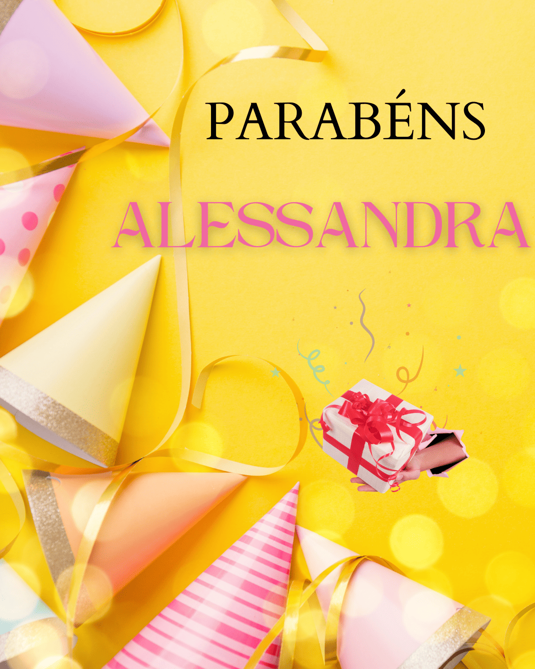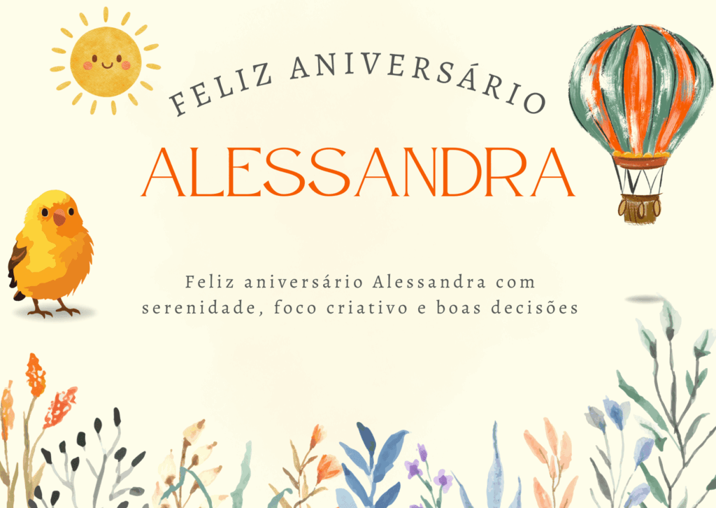 Feliz aniversário Alessandra! Hoje é dia de celebrar sua história, seu esforço e tudo o que você já construiu. Eu te desejo um aniversário com risadas, carinho e aquela sensação boa de que o melhor ainda vai acontecer.