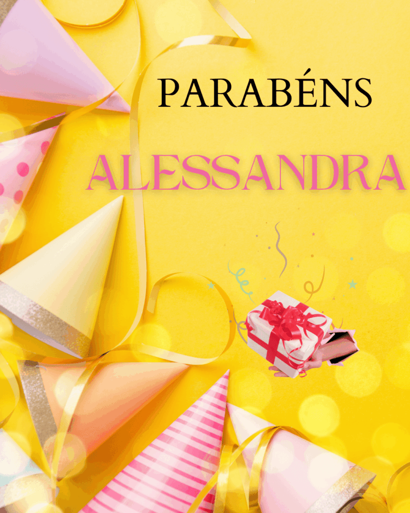 Alessandra, no seu aniversário eu te desejo um presente que não se embrulha: leveza. Leveza para a rotina, para o coração e para os pensamentos. Feliz aniversário Alessandra, que você se sinta amada e cuidada hoje.
