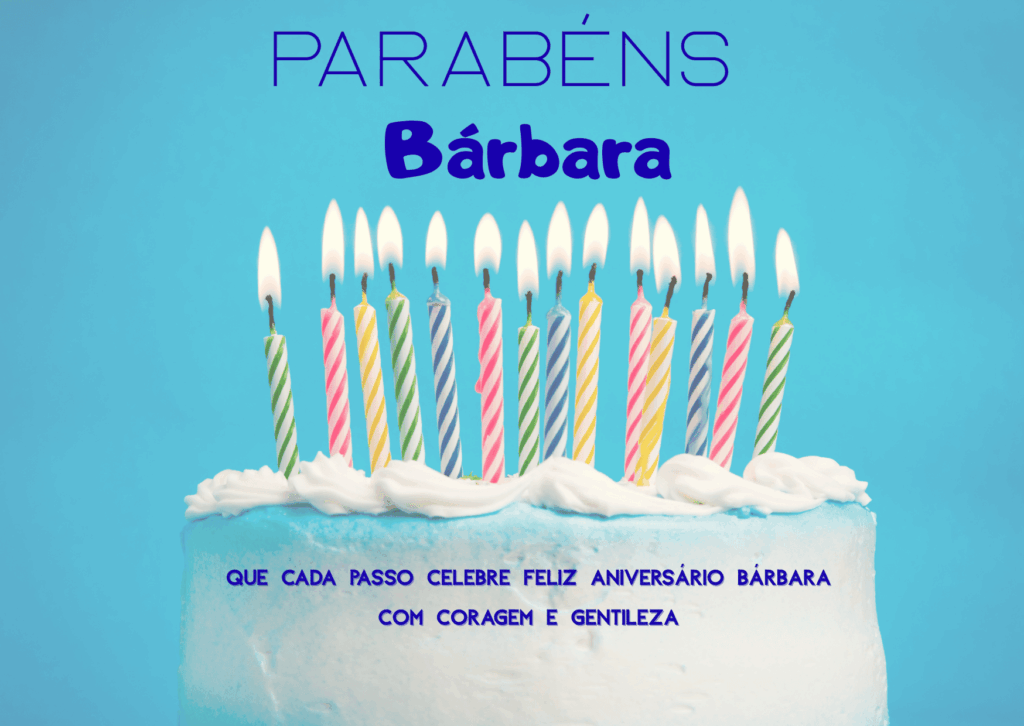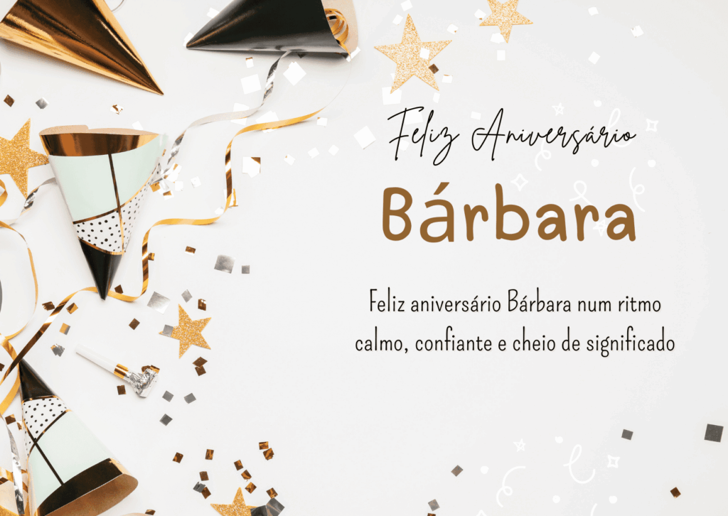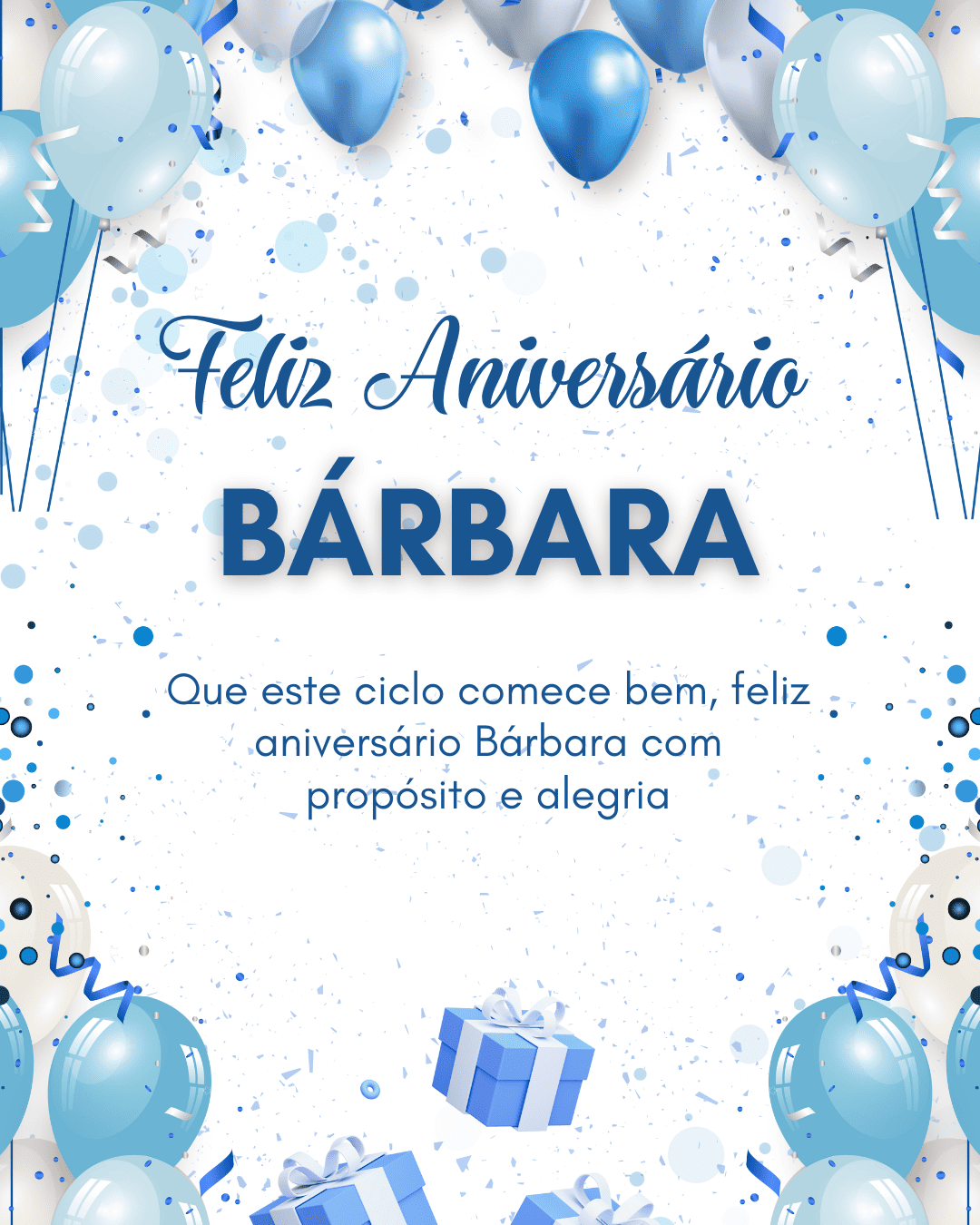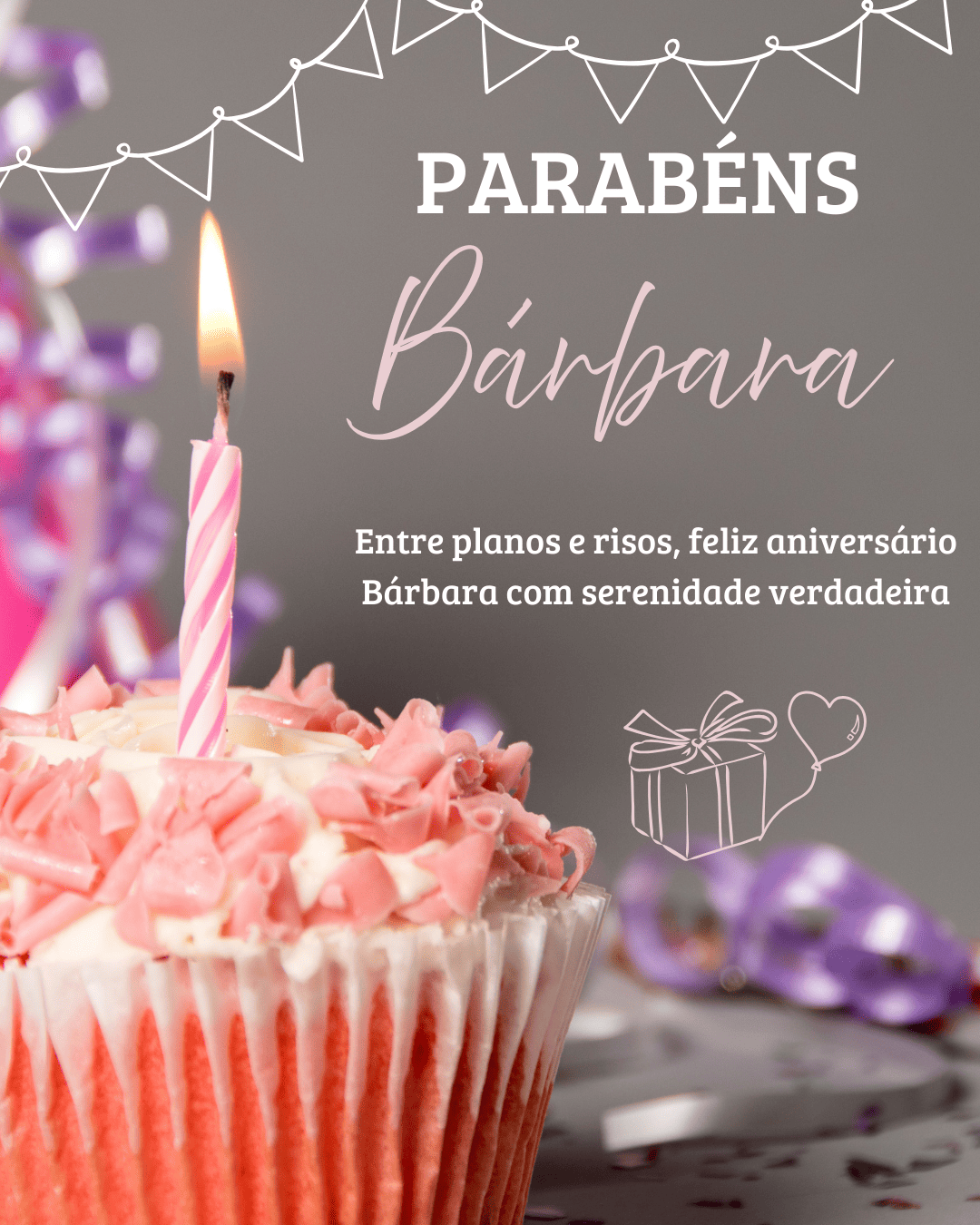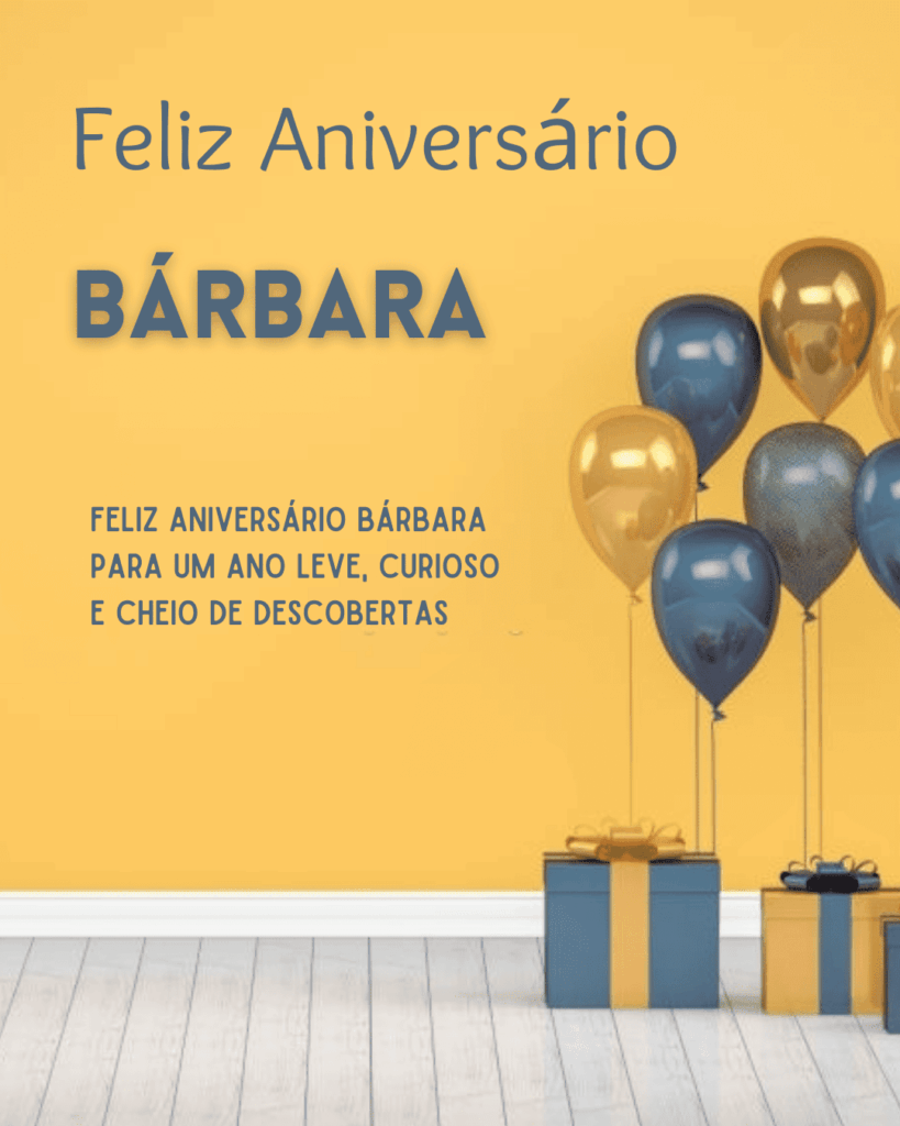 Feliz aniversário Bárbara! Que hoje você receba carinho em cada detalhe: uma mensagem bonita, um abraço sincero e uma comemoração do seu jeito. Você é uma pessoa forte, sensível e cheia de luz, e isso inspira quem está ao seu lado.