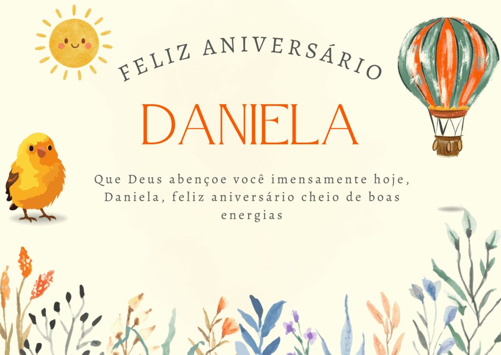 Daniela, desejo que este feliz aniversario Daniela seja repleto de bênçãos, paz e gratidão. Que você encontre motivos para sorrir em cada detalhe do dia e sinta o quanto é amada.