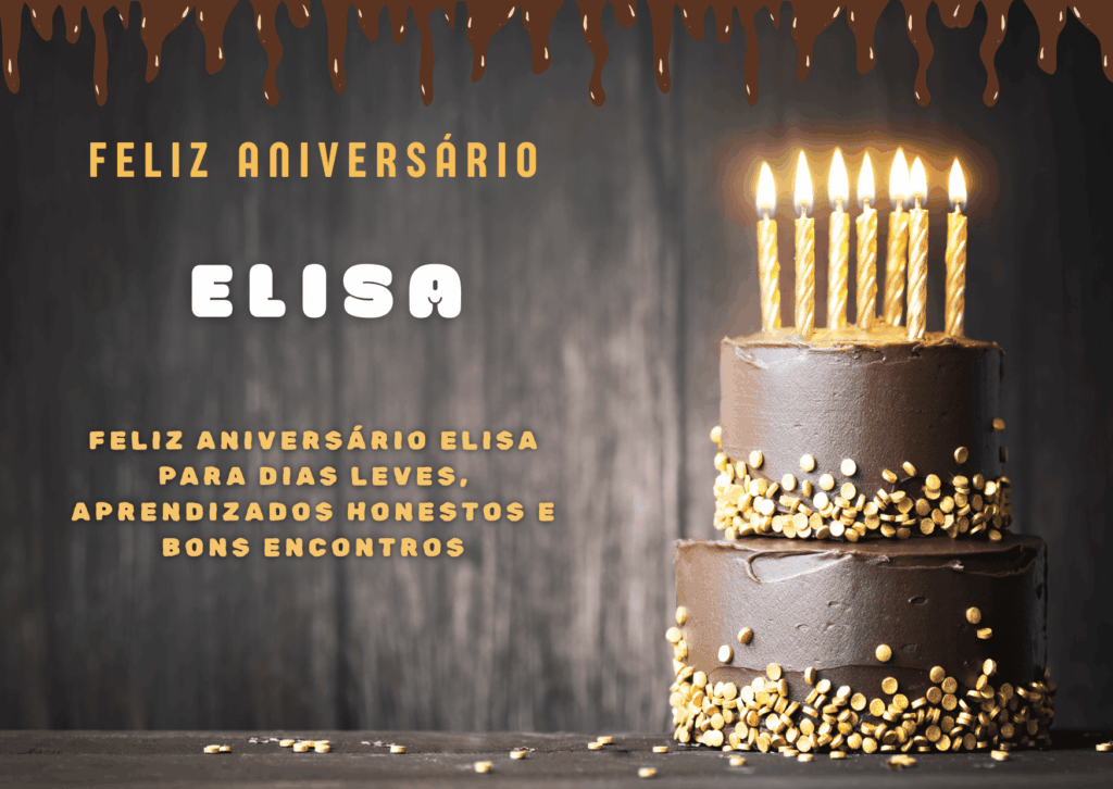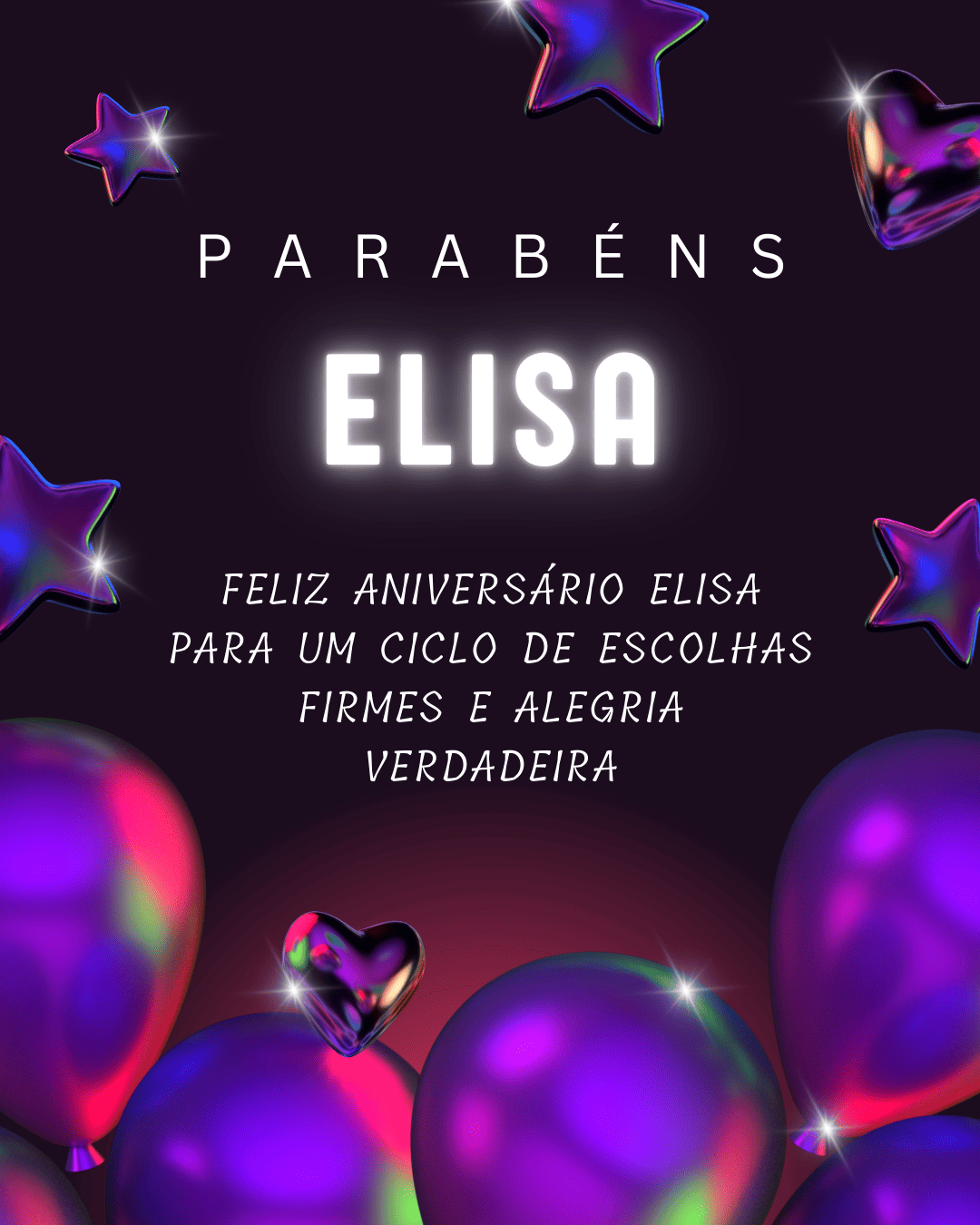 Feliz aniversário Elisa! Hoje é dia de celebrar sua vida, sua história e tudo o que você já conquistou. Eu te desejo um aniversário com risadas, carinho e aquela sensação boa de que o melhor ainda está por vir.