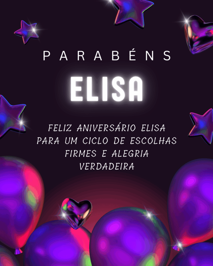 Elisa, eu poderia te mandar um “parabéns” simples, mas você merece palavras com verdade. Você tem uma energia bonita, que aparece no seu cuidado com os outros e na forma como você enfrenta a vida com coragem. Feliz aniversário Elisa, que seu dia seja especial e cheio de bons momentos.