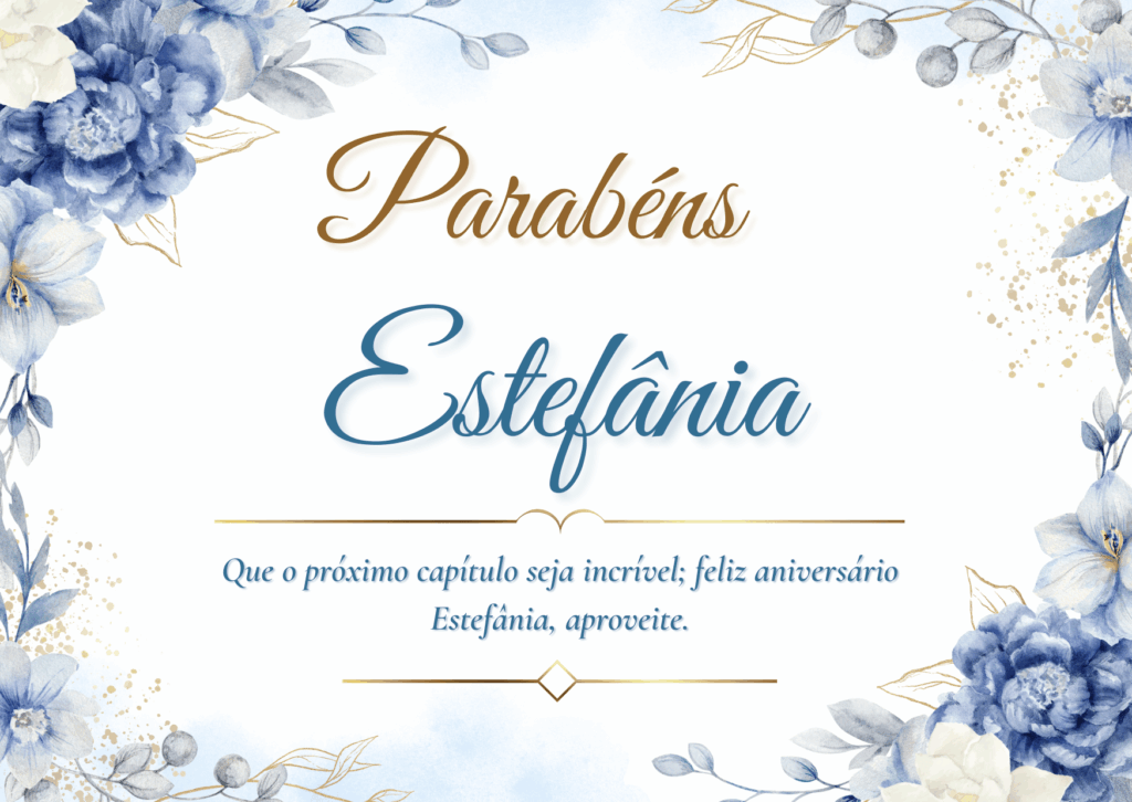 Estefânia, que alegria poder comemorar o seu aniversário! Você é uma pessoa marcante, com um jeito único de tornar a vida mais leve e mais bonita. Feliz aniversário Estefânia, que seu dia seja tranquilo, cheio de afeto e boas surpresas.