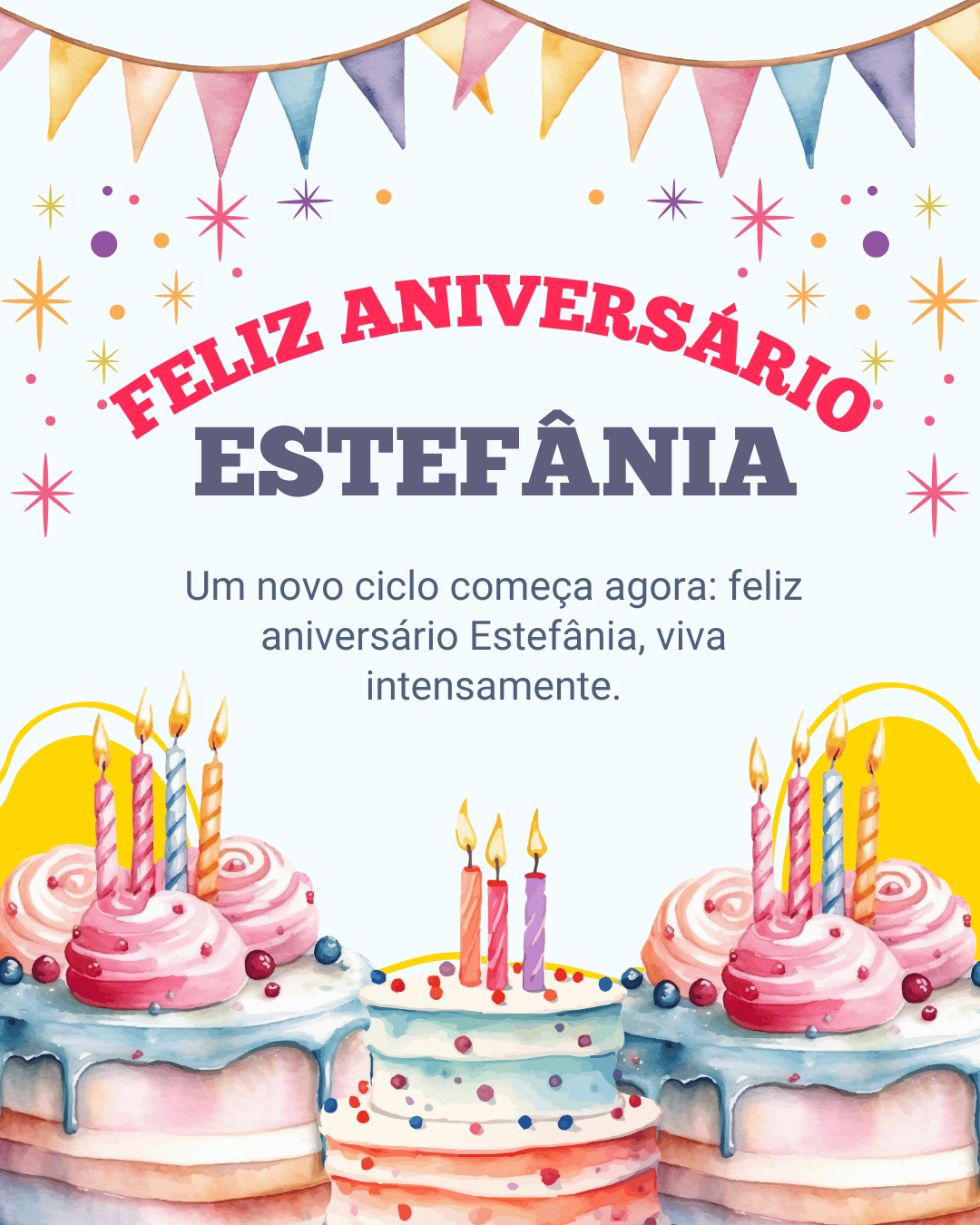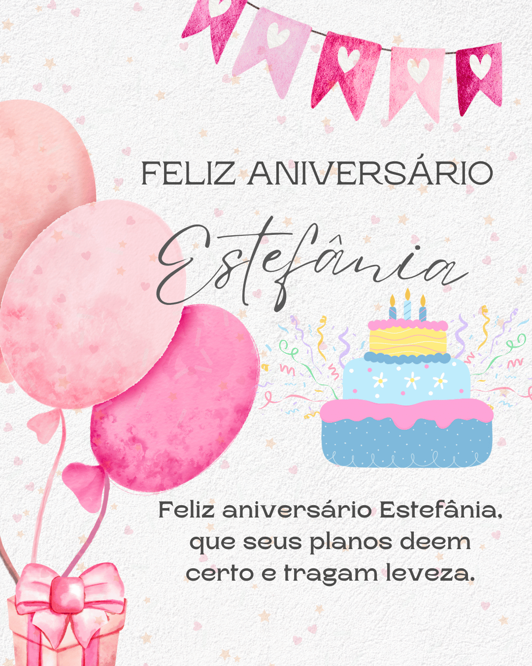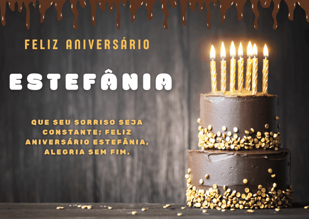 Feliz aniversário Estefânia! Hoje é dia de celebrar sua vida, sua história e tudo o que você já conquistou. Eu te desejo um aniversário com risadas, carinho e aquela sensação boa de que o melhor ainda está por vir.